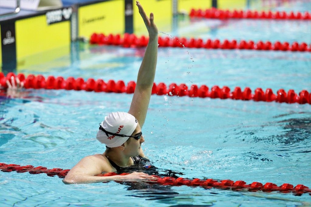Она обновила свой же рекорд (57,42), установленный днем ранее в квалификационных заплывах, а также выполнила норматив отбора в сборную страны (58,14) на чемпионат мира по водным видам спорта, который пройдет с 16 по 30 июля в Будапеште (Венгрия).