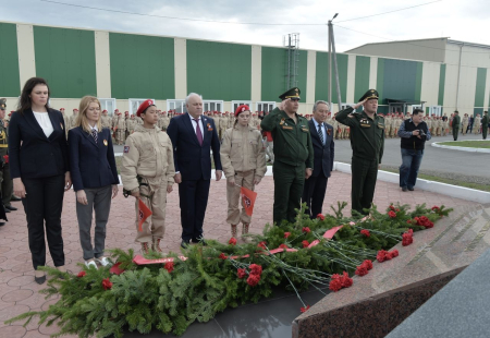 После произнесения клятвы на верность Отечеству и всему юнармейскому братству, юные патриоты положили цветы к Мемориалу памяти, который расположен на плацу воинской части, а начальнику регионального штаба «Юнармии» Николаю Крикьянцу было вручено знамя юнармейского движения.