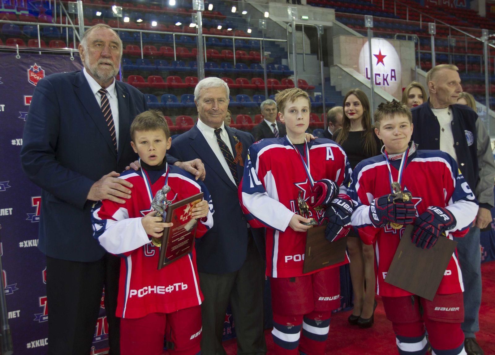В перерывах между эстафетами воспитанникам школы и их наставникам вручили памятные призы и плакетки, а также завоеванные медали и кубки. Тренер команды ЦСКА-2006 Павел Баулин был отмечен нагрудным знаком Минспорта РФ «Отличник физической культуры и спорта», а руководящий состав клуба в лице Игоря Есмантовича, Сергея Федорова, Алмаза Гарифуллина, Елены Бересневой, Алексея Трощинского, Бориса Шагаса и Евгения Швеца – Благодарностью Министра спорта Российской Федерации.