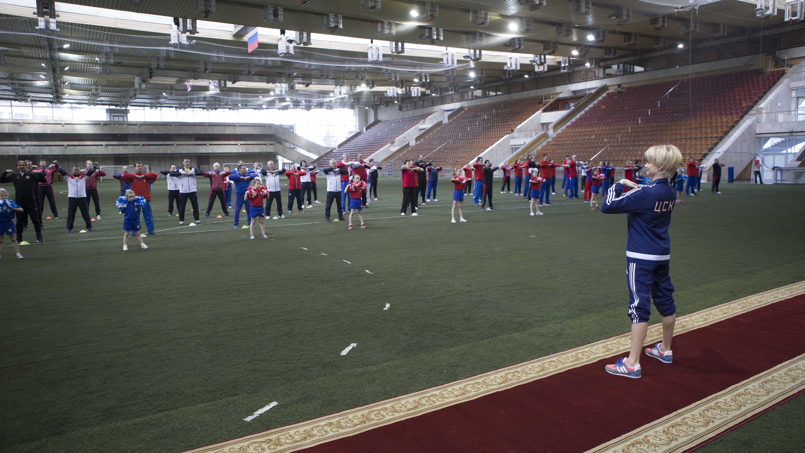 Форма одежды на зарядке - спортивный костюм ЦСКА.
