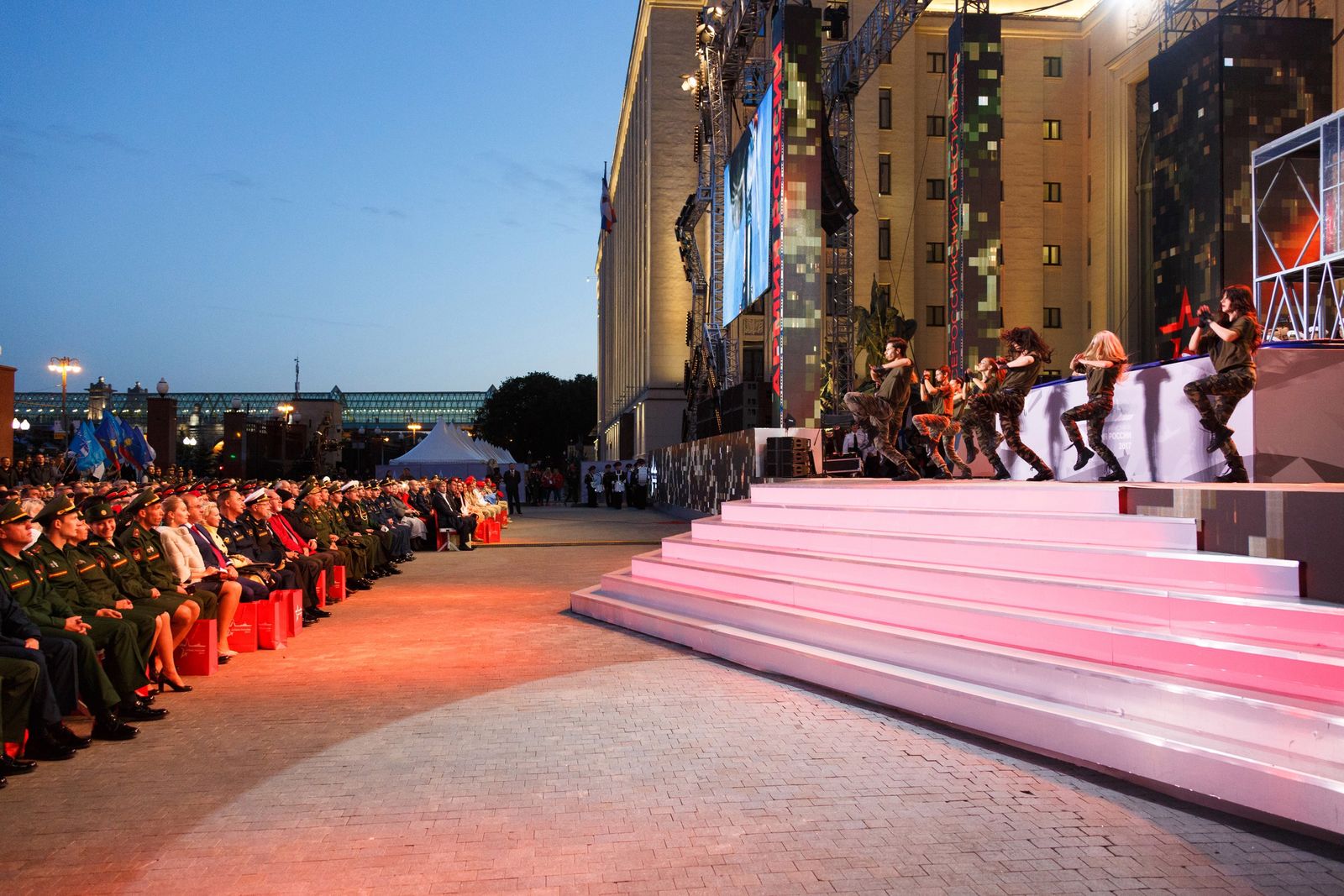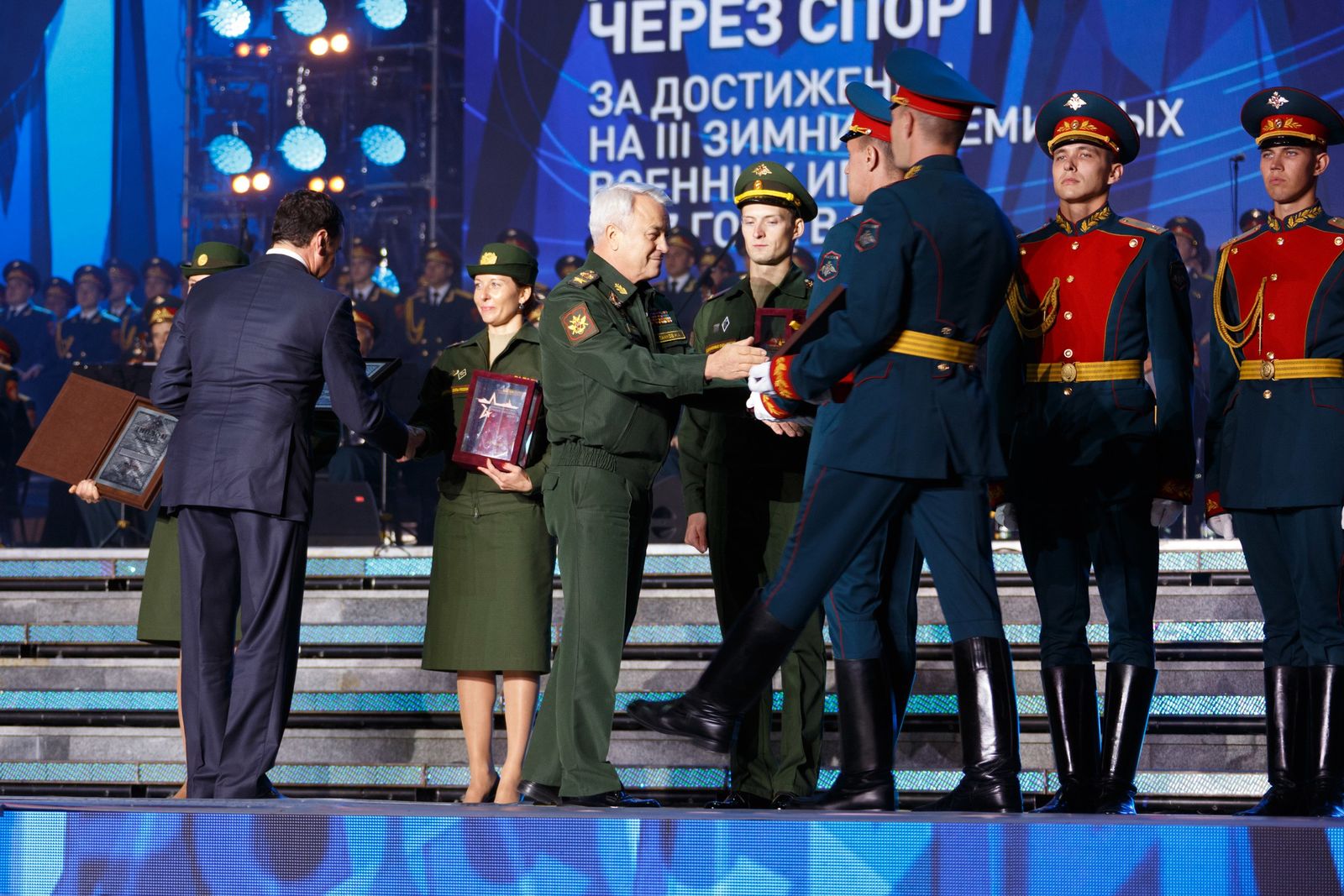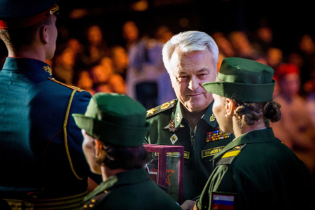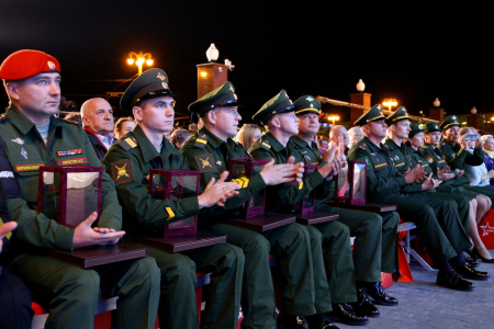 Церемония награждения прошла на открытой сцене у здания Национального центра управления обороной РФ. В ней принял участие министр обороны РФ, Герой России генерал армии Сергей Шойгу.