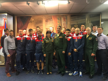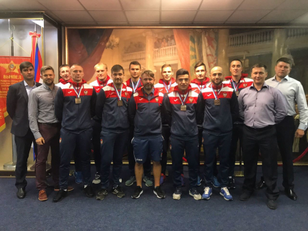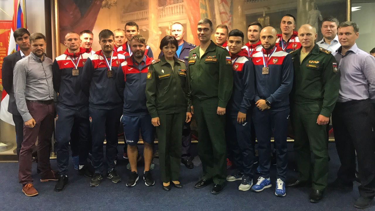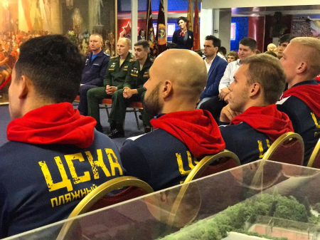 — Доброй традицией стали проводы в Музее ЦСКА армейцев на соревнования, после чего наши спортсмены неизменно добиваются успехов. В августе мы провожали вас в Саратов на Суперфинал чемпионата России, где вы впервые в истории клуба завоевали медали национального первенства. Желаю вам в следующем сезоне, как минимум, выиграть серебряные награды, — сказал в своей речи полковник Громов.
