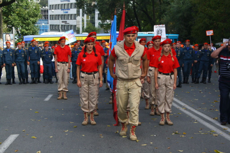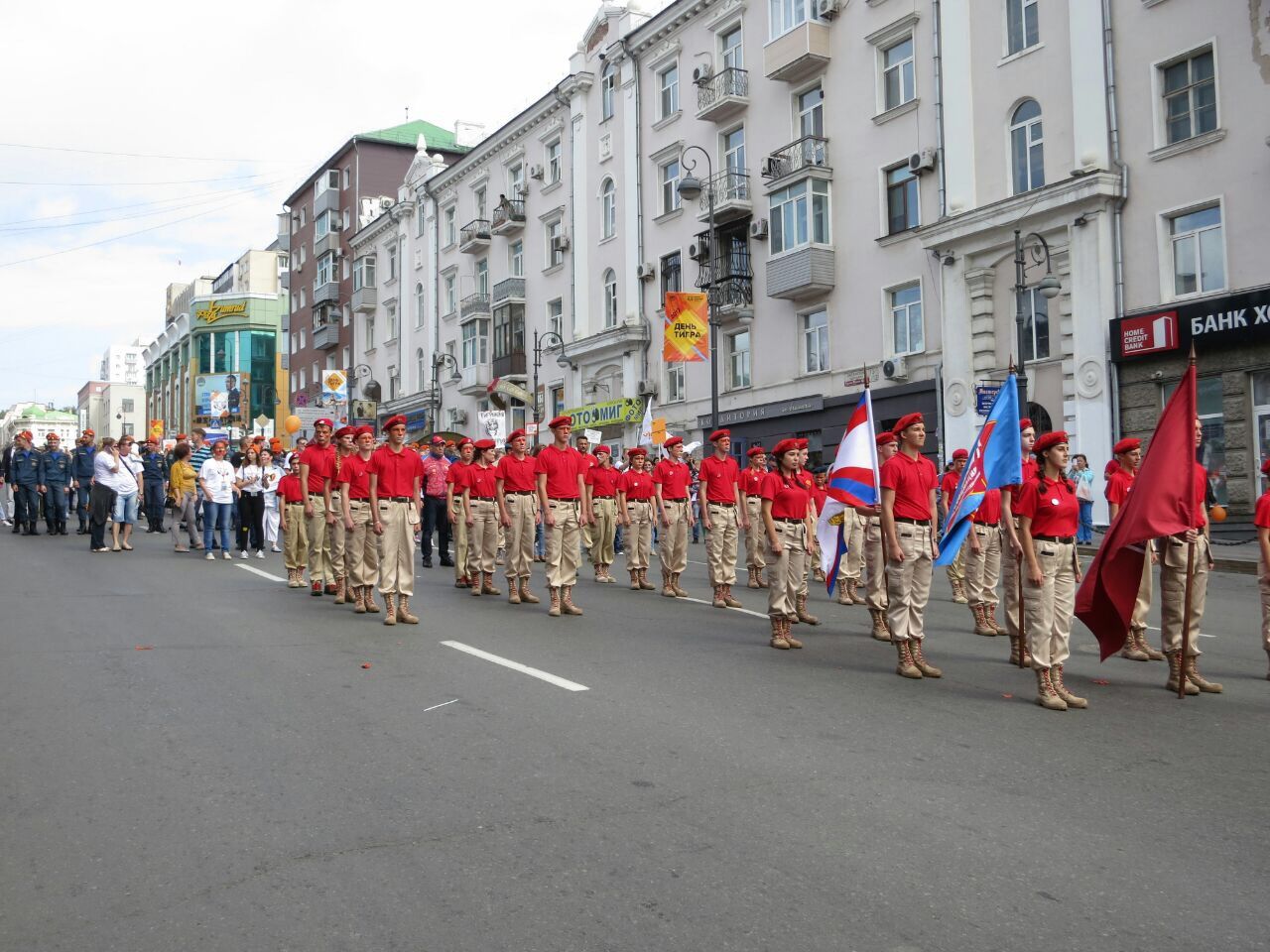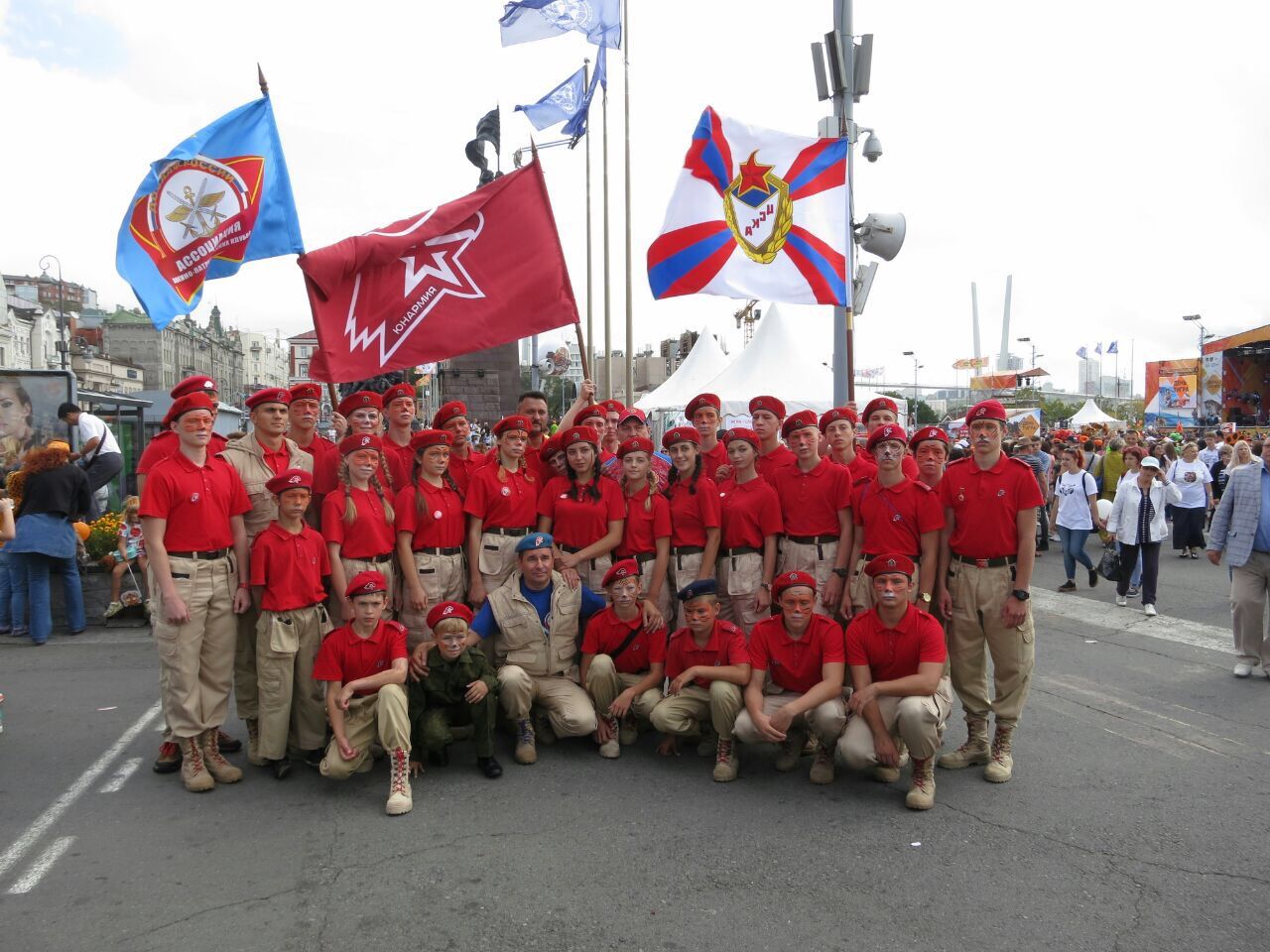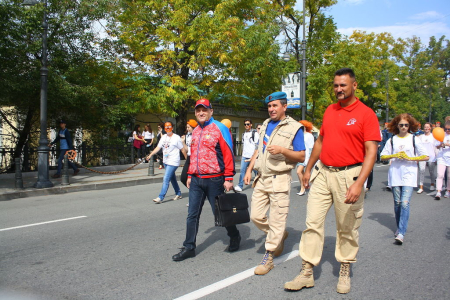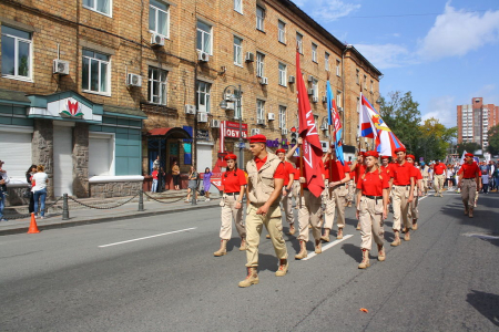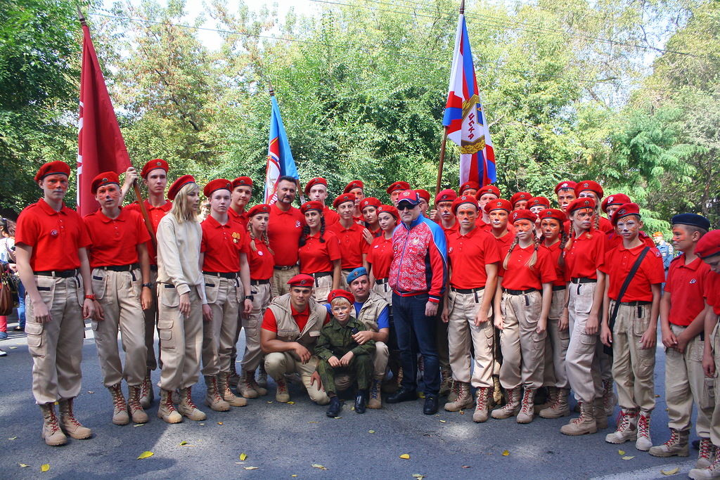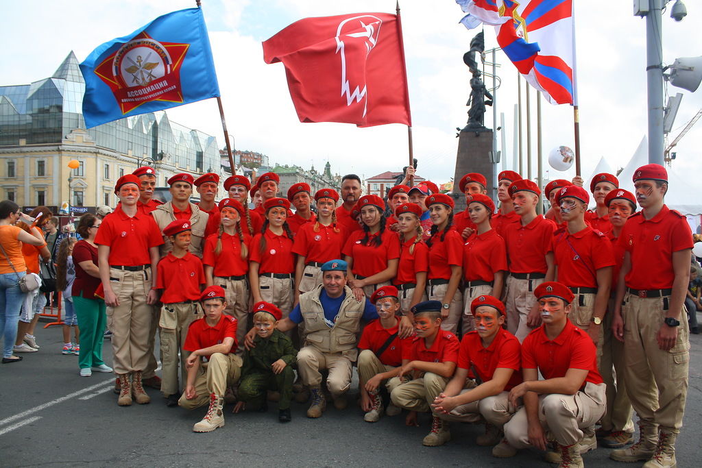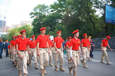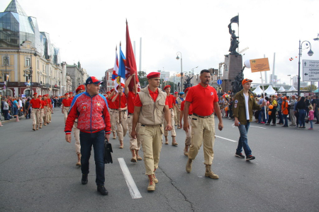 В колонне юнармейцев вместе с ребятами вместе шли начальник филиала ЦСКА/Хабаровск Григорий Туров, руководитель Приморского отделения ДОСААФ Игорь Доценко и сотрудники «Юнармии» – куратор движения по Дальневосточному федеральному округу Дмитрий Минязев и начальник регионального штаба «Юнармии» Богдан Юрчук.