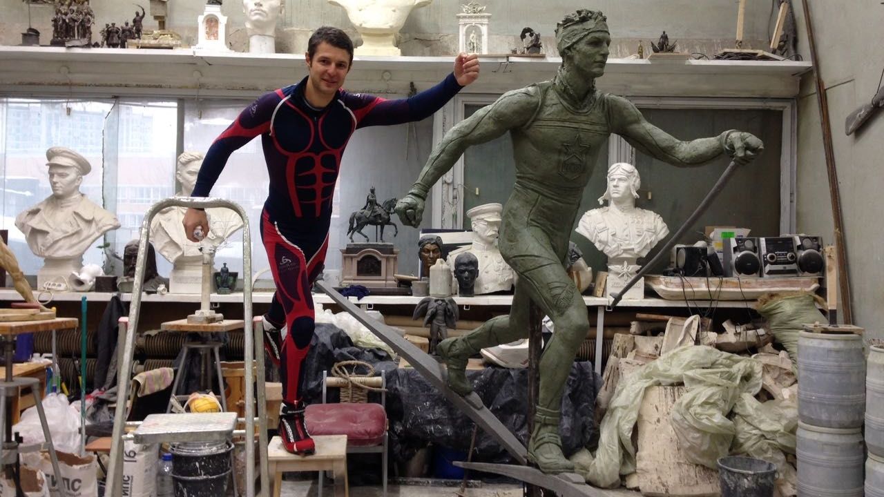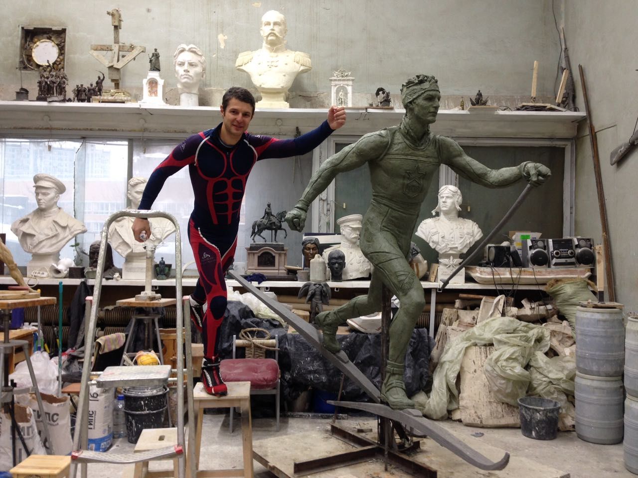 – У художников уже был общий макет скульптуры из пластилина. Она примерно два метра в высоту. Мы обговорили нюансы, как должны выглядеть лыжные ботинки скульптуры, что должно быть изображено на номере бегущего спортсмена. Я пришел в Студию полностью в лыжной экипировке, с лыжами и палками. Скульпторы внимательно посмотрели, как выглядит крепление ботинок. Лыжи в скульптуре не совсем точно удалось передать – ведь лыжи будут бронзовыми, и нужно их отлить так, чтобы вандалы не сломали. Также мы обговорили позу лыжника.