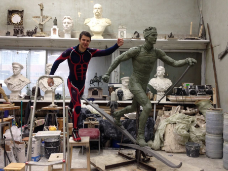 – Около пяти часов. Конечно, не в той позе, которая запечатлена в скульптуре. В первую очередь, художники хотели слепить с меня лицо лыжника, а также воротник спортивного комбинезона, перчатки и ботинки.
