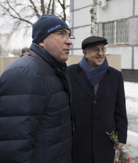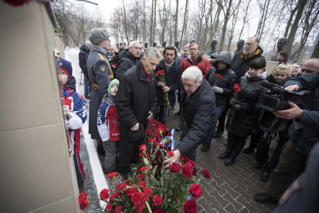 Митинг продолжился у памятной стелы у Ледового дворца спорта, который носит имя Всеволода Боброва. В своей речи президент ПХК ЦСКА Игорь Есмантович отметил бесценный вклад сегодняшнего именинника в становление ЦСКА.