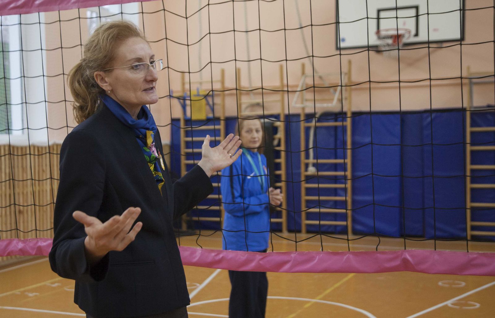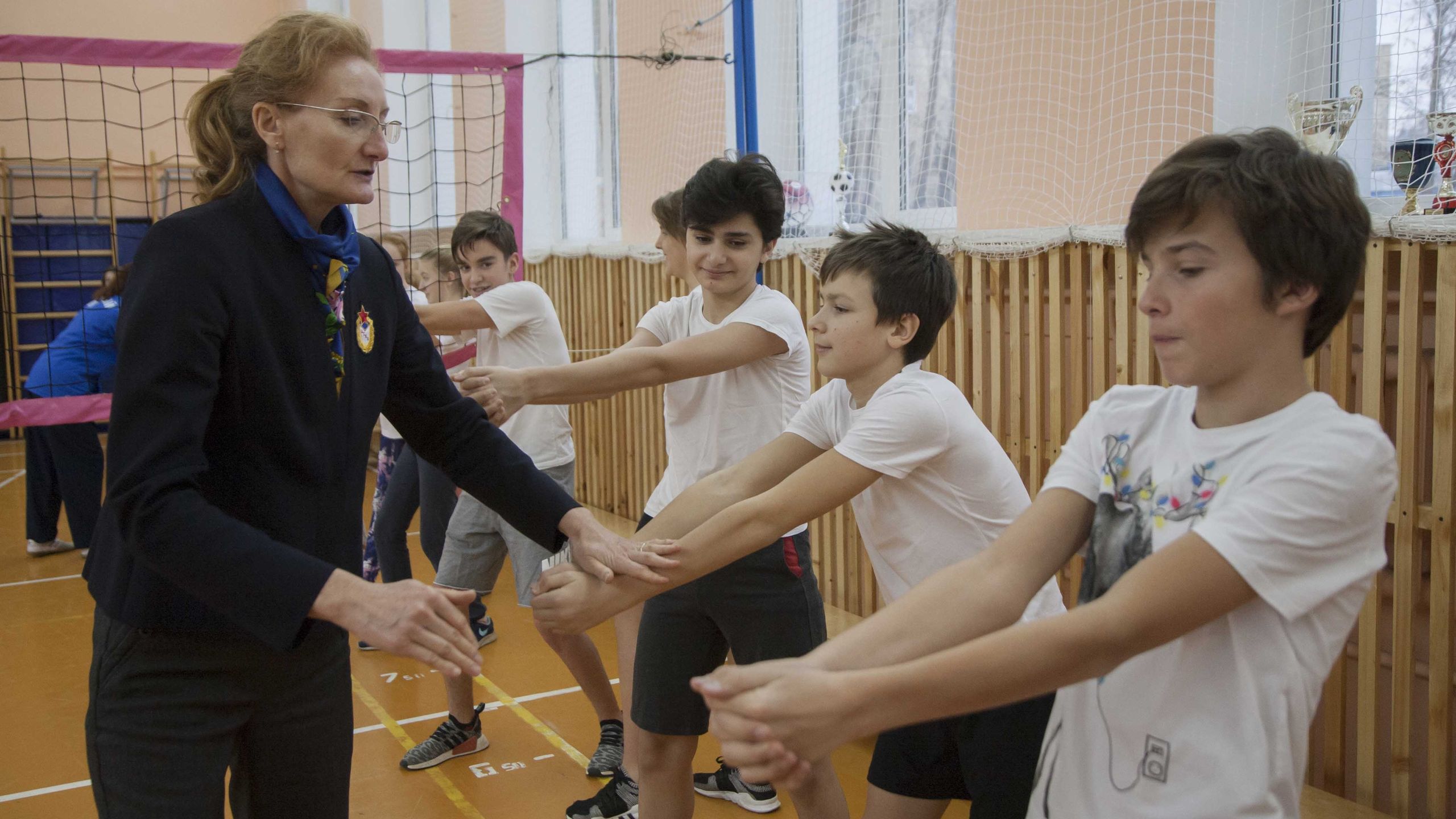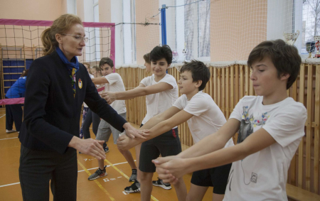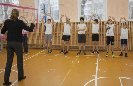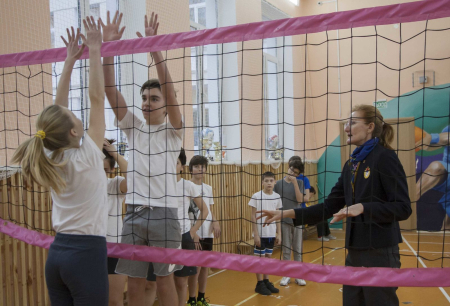 Олимпийская чемпионка Сеула-1988 по волейболу, член Президиума Совета ветеранов спорта ЦСКА Марина Кумыш провела показательный урок для учащихся московской школы №1252 им. Сервантеса с углублённым изучением испанского языка.