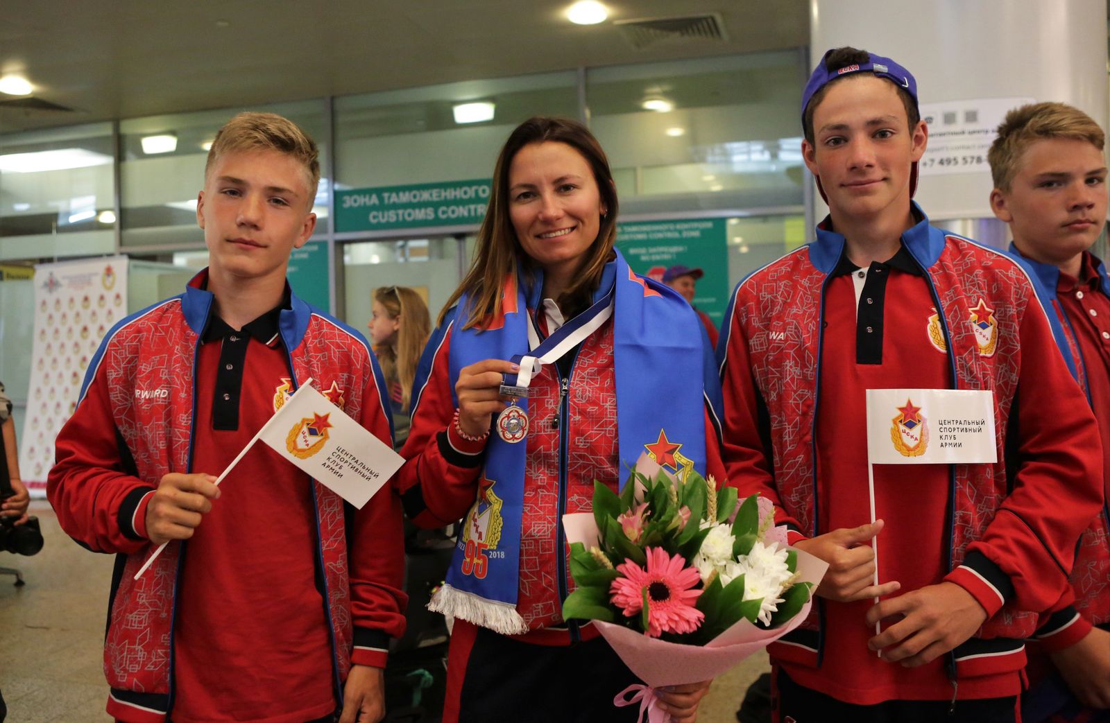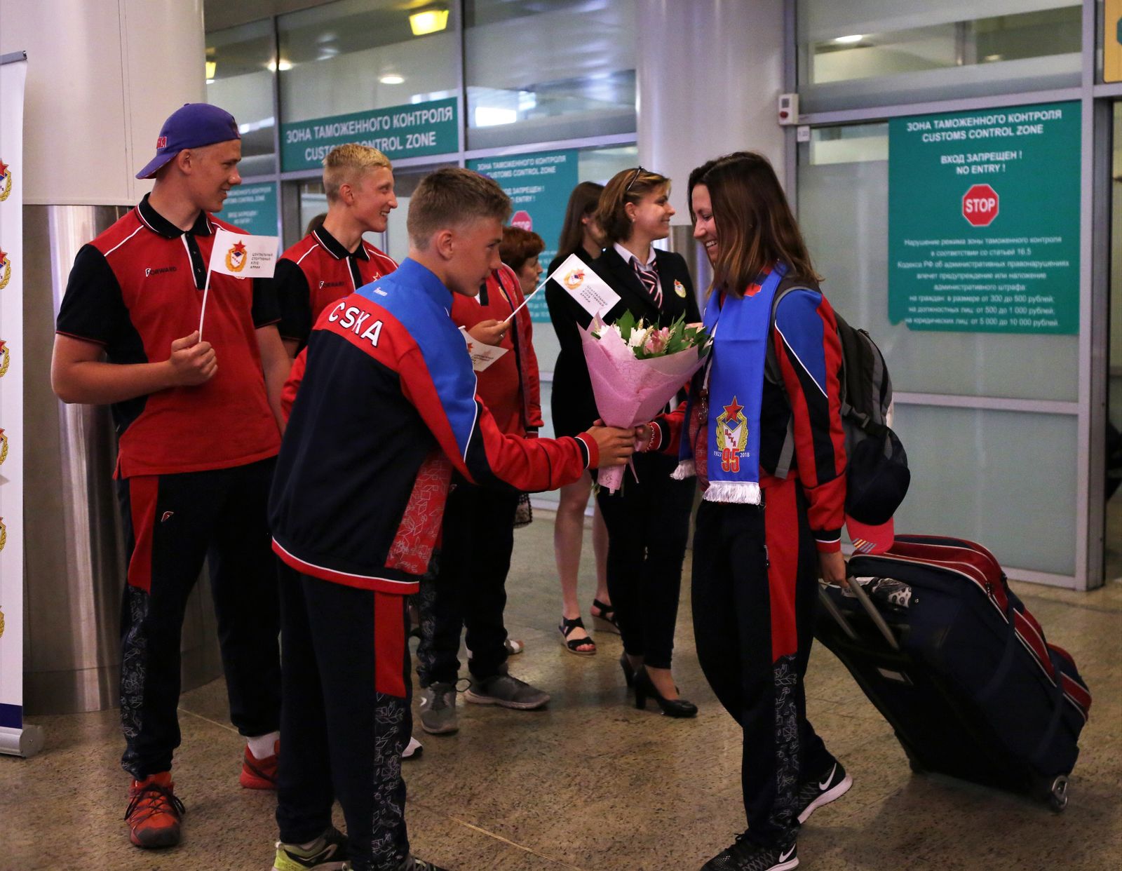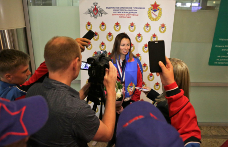 В столичном аэропорту спортсменку встречали представители Центрального спортивного клуба Армии с болельщиками.