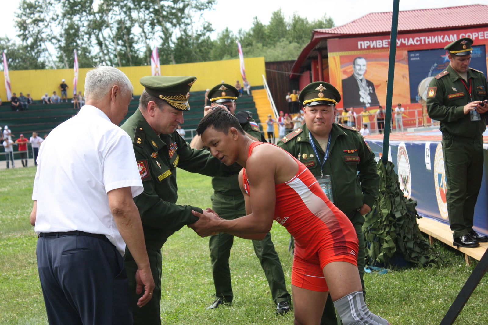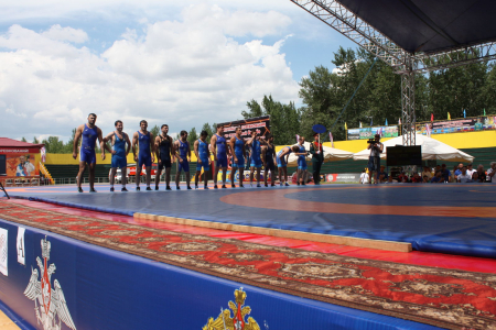 Во встрече за главный трофей турнира на борцовских коврах на открытом воздухе сошлись команды ЦСКА (Москва) и 41 общевойсковой армии (Новосибирск), занявшие первые места в своих группах. Многочисленные болельщики, которых собралось на стадионе «Хуреш» более трех тысяч, были в предвкушении интересных и принципиальных схваток борцов этих двух команд.
