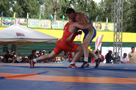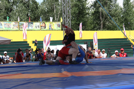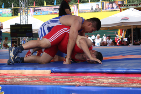 «Вольники» начали свои поединки еще активнее. После первого веса, спортсмены из Новосибирска вышли вперед – 4:3. Затем на борцовский ковер в категории до 65 кг вышел представитель команды 41 армии – трехкратный чемпион мира среди военнослужащих, победитель гражданского чемпионата мира Начын Куулар. Переполненные трибуны стадиона «Хуреш» оказали мощнейшую поддержку спортсмену. В итоге победа над армейцем со счетом 6:1. Затем в весах до 74 кг, до 86 кг и до 97 кг победа досталась также представителям команды 41 общевойсковой армии. В последней схватке финальной встреч на ковре сошлись борцы в весовой категории до 125 кг – представитель ЦСКА двукратный чемпион мира среди военнослужащих прапорщик Алан Хугаев и рядовой Айдын Монгуш. В интересной и принципиальной борьбе, даже получив травму плеча, победу одержал армейский борец.