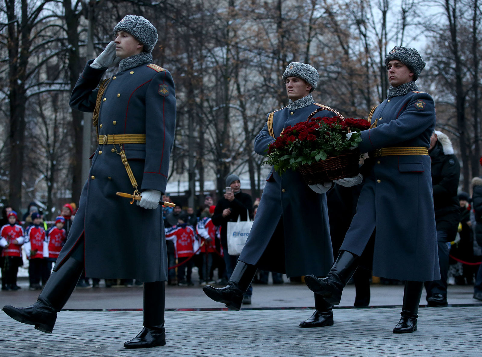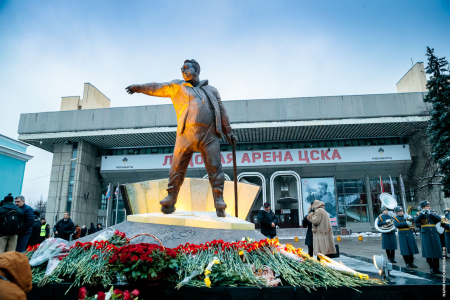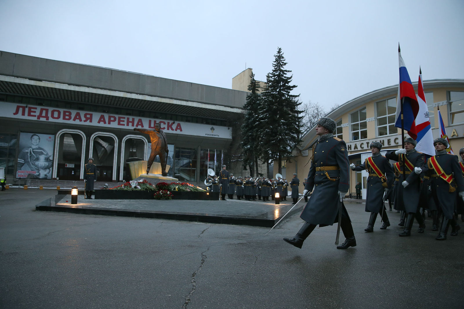 В рамках торжественной церемонии гости возложили живые цветы к памятнику легенды российского хоккея.