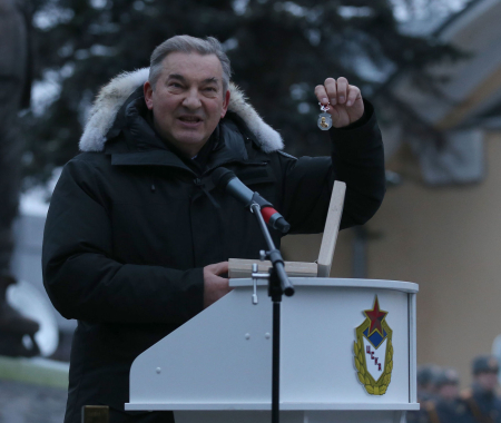 С вступительным словом к гостям памятного мероприятия обратился статс-секретарь заместитель министра обороны Российской Федерации генерал армии Николай Панков. Он отметил, что установку этого монумента горячо поддержал Министр обороны Российской Федерации генерал армии Сергей Шойгу.