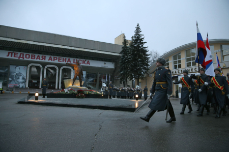В торжественной церемонии также приняли участие советник мэра Москвы по социальным вопросам Леонид Печатников, временно исполняющий обязанности начальника Управления физической подготовки и спорта ВС РФ полковник Андрей Зыков, начальник Центрального спортивного клуба Армии полковник Артем Громов, а также именитые армейские хоккеисты, ветераны спорта ЦСКА, участники турнира «Золотая шайба» разных лет, юные хоккеисты и верные болельщики.