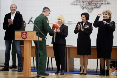 Также начальник ЦСКА от лица профессионального армейского баскетбольного клуба передал первый подарок в спортивный музей Пансиона - баскетбольный мяч с автографами и пожеланиями от всех игроков ПБК ЦСКА.
