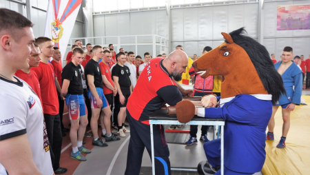 Правильную технику борьбы на руках – мастер-класс по армрестлингу – для всех желающих провел призёр чемпионатов мира и Европы, заслуженный тренер России по армспорту, тренер ЦСКА по армрестлингу Имирислан Агаширинов. Курсанты увлеченно пробовали себя в этом интересном виде спорта. Даже девушки-юнармейцы с большим энтузиазмом шли бороться на руках.