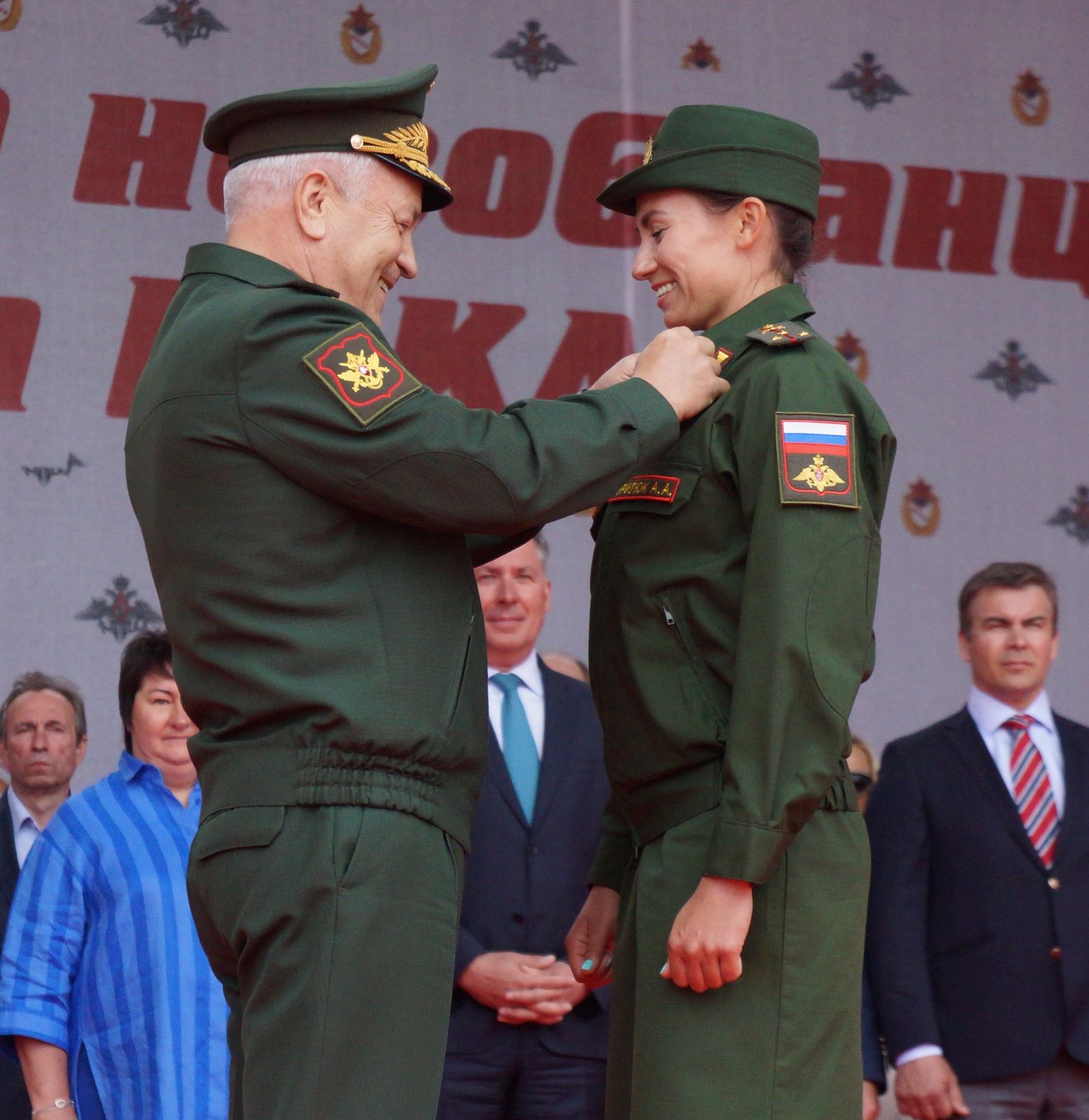 Медалью «За воинскую доблесть» I степени инструктор (по спорту высшей квалификации) спортивной команды (по легкой атлетике и триатлону) старший лейтенант Ольга Дмитриева;
