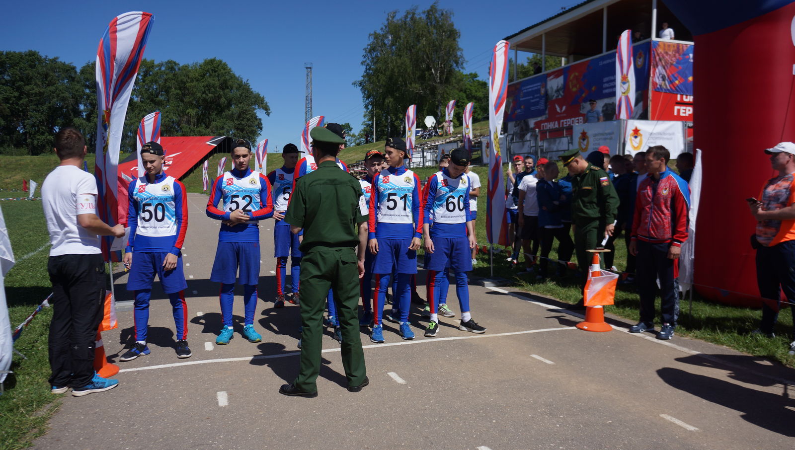 Первой на старт вышла команда Военно-спортивного лицея имени Монте Мелконяна из Армении, наставником которой является двукратная чемпионка Европы, чемпионка и призёр чемпионатов России по тяжёлой атлетике спортсменка ЦСКА Наталья Хлесткина. Наставник пожелала ребятам держать командный дух и идти только вперёд.