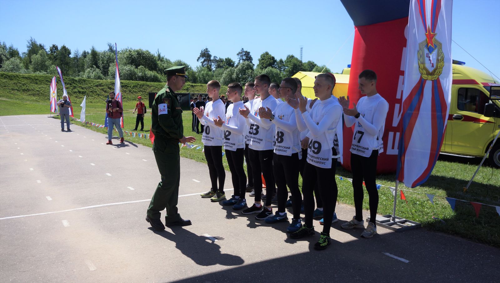 Двукратный чемпион мира по современному пятиборью, чемпион и серебряный призёр чемпионата Европы, победитель Всемирных военных игр в командном зачёте старший лейтенант Сергей Карякин и Санкт-Петербургский военный кадетский корпус вышли на старт конкурса четвёртыми. Спортсмен ЦСКА провёл с командой небольшую тренировку и пожелал им получить удовольствие от гонки.