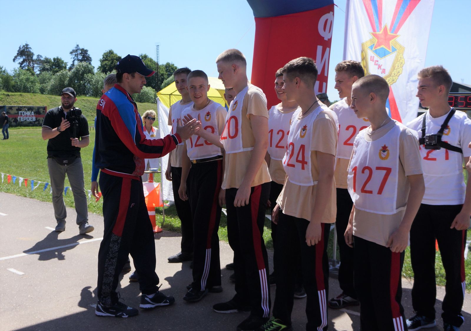 На старте военно-спортивного конкурса «Суворовский марш», который представлял собой соревнование по спортивному ориентированию с 10 контрольными точками, пять из которых теоретические, кадетов поддерживали и напутствовали их наставники - спортсмены и тренеры Центрального спортивного клуба Армии.