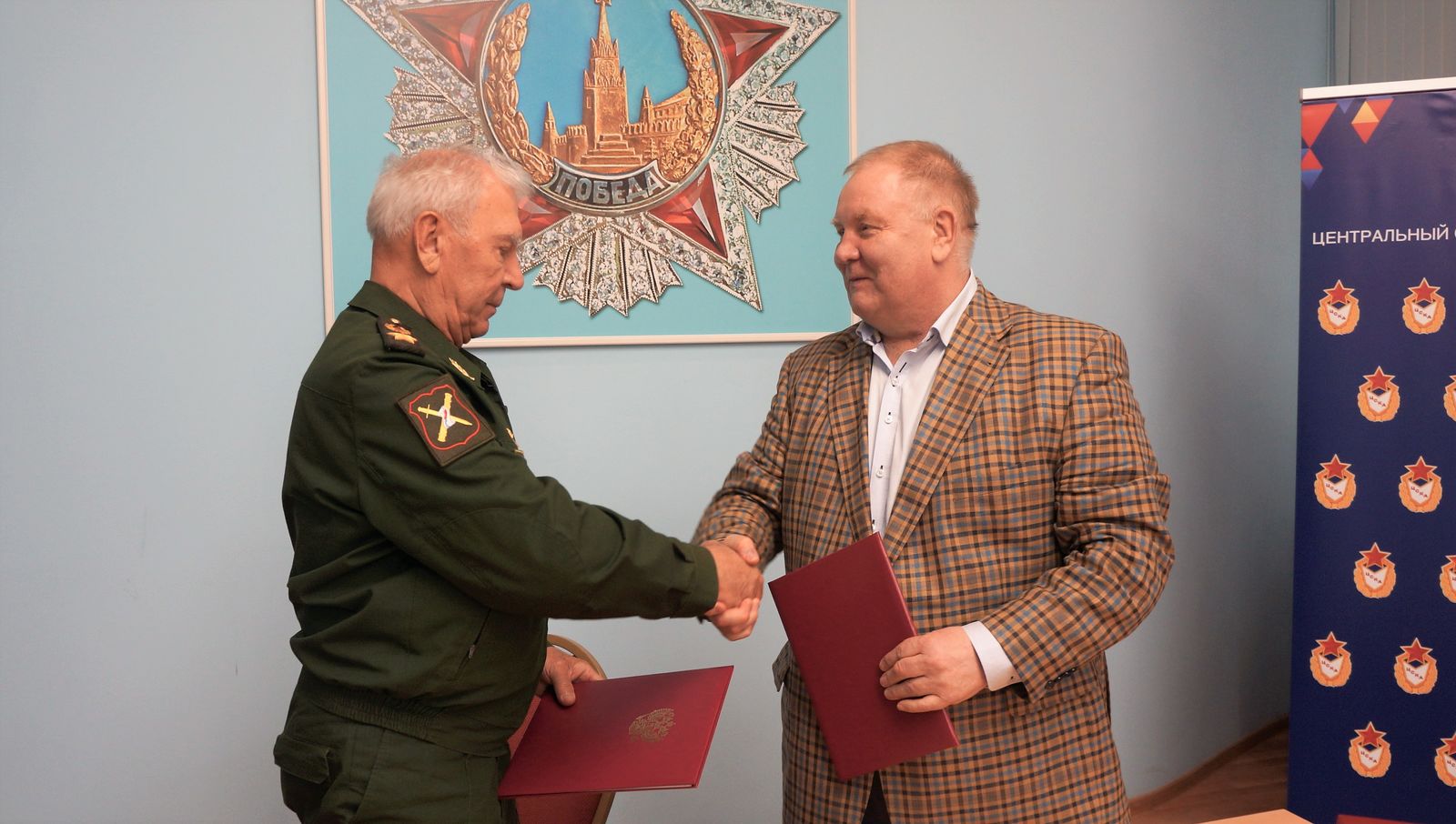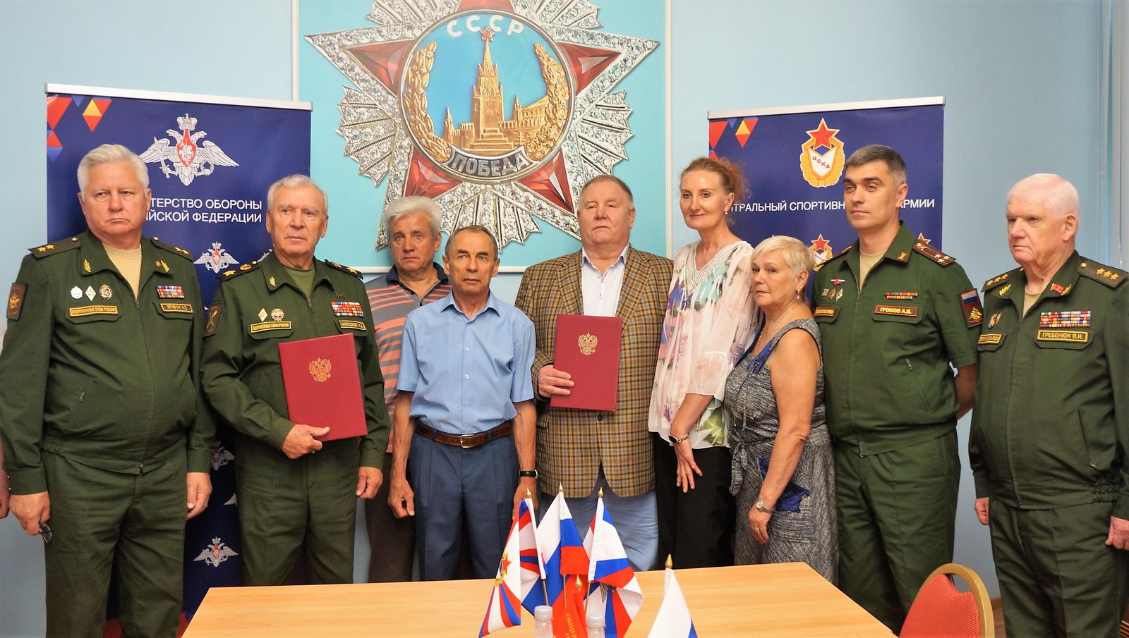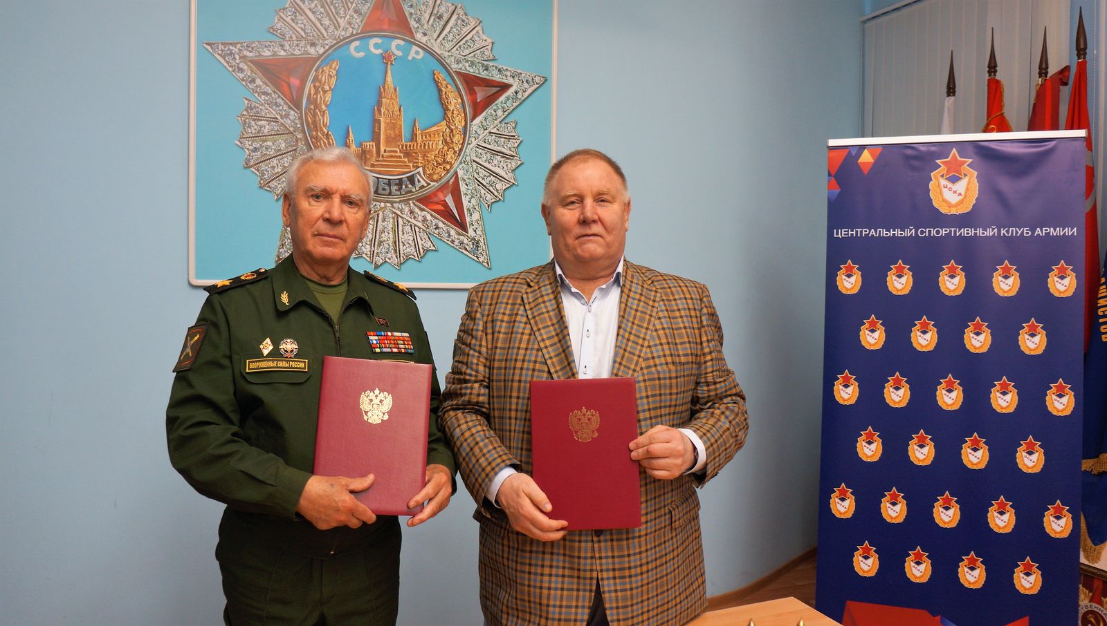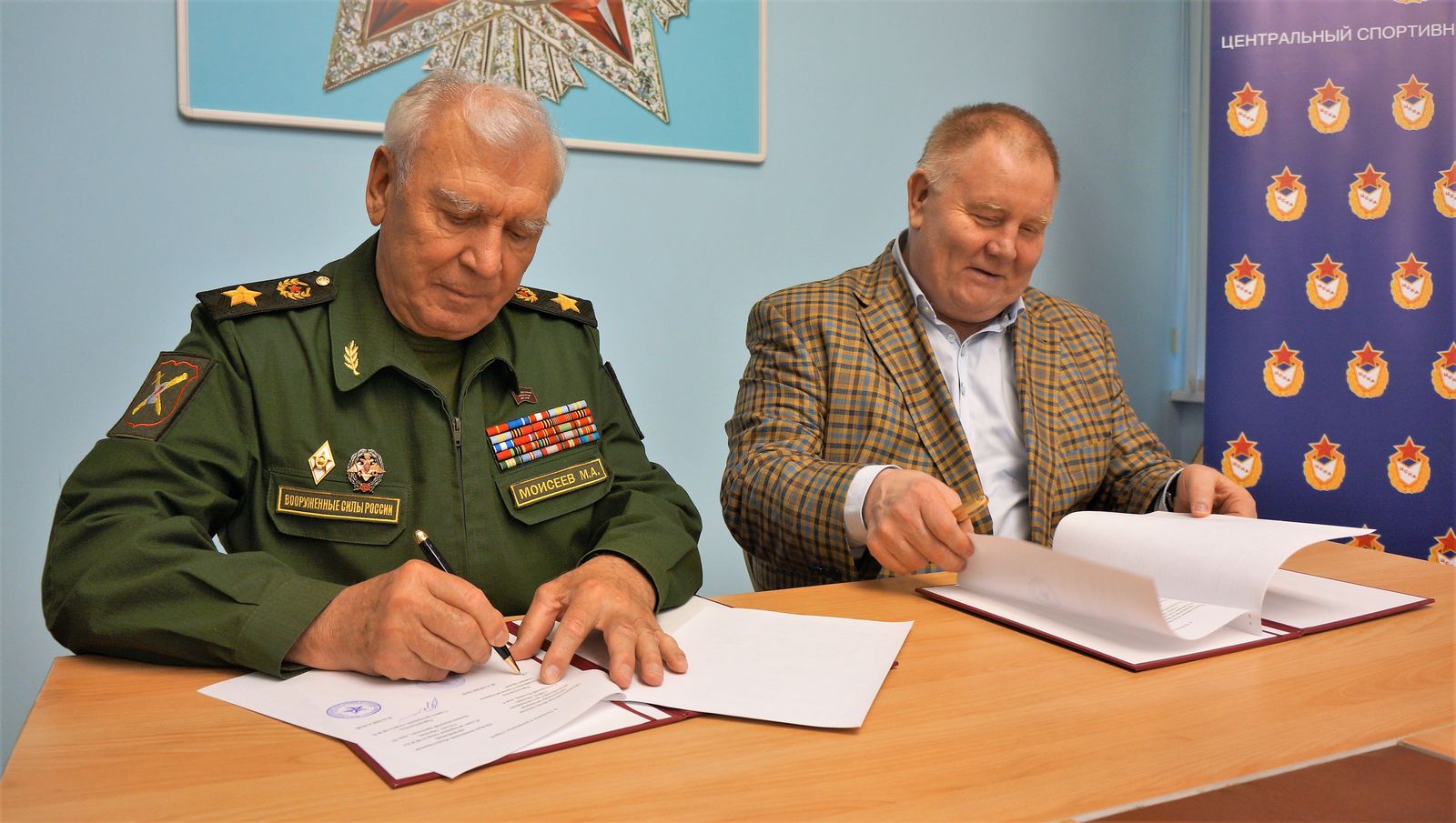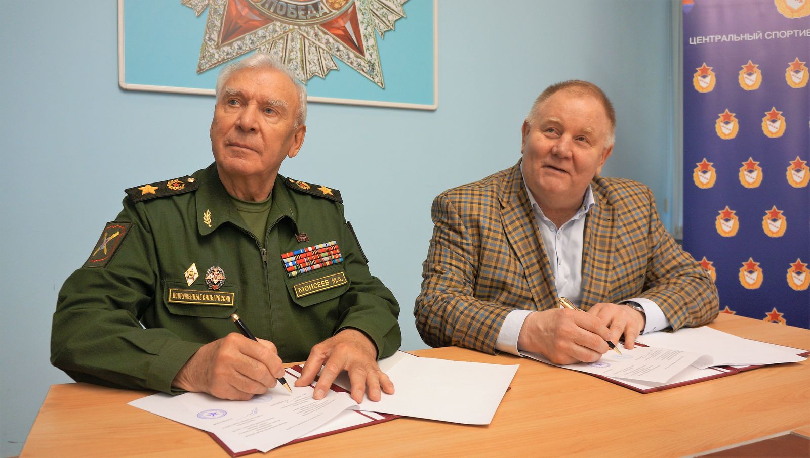 Торжественное подписание соглашения произвели Генеральный инспектор МО РФ, председатель «Российского Союза ветеранов» генерал армии Михаил Моисеев и пятикратный чемпион мира, семикратный чемпион СССР, победитель Спартакиады народов СССР по самбо, чемпион Европы по дзюдо, вице-президент Федерации дзюдо России, Заслуженный мастер спорта СССР, председатель Совета ветеранов спорта ЦСКА Владимир Шкалов.