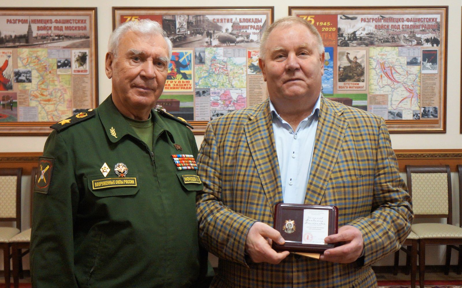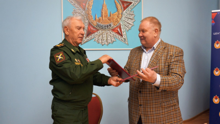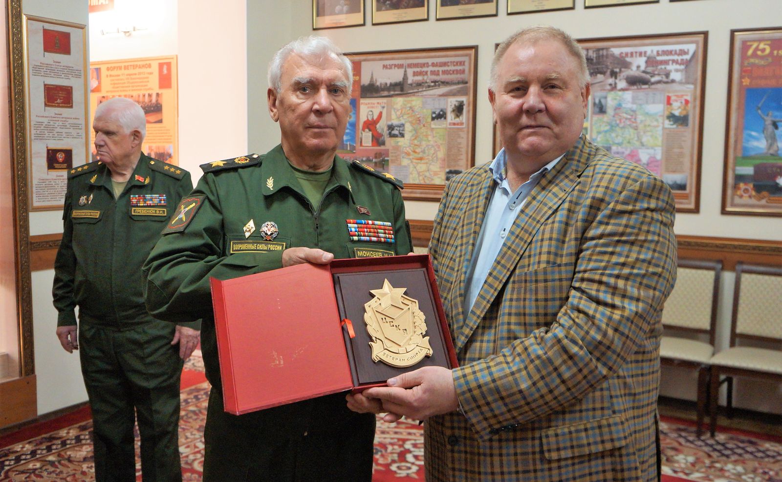 В свою очередь Владимир Шкалов преподнес «Российскому Союзу ветеранов» памятную плакетку «Совета ветеранов спорта ЦСКА».