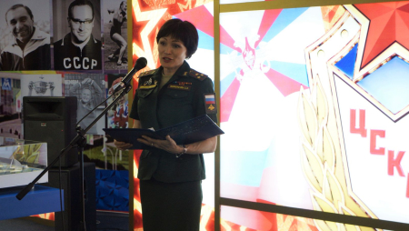 С вступительным словом к участникам мероприятия обратилась двукратная олимпийская чемпионка по биатлону, заместитель начальника Клуба по военно-политической работе полковник Светлана Ишмуратова: