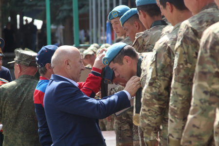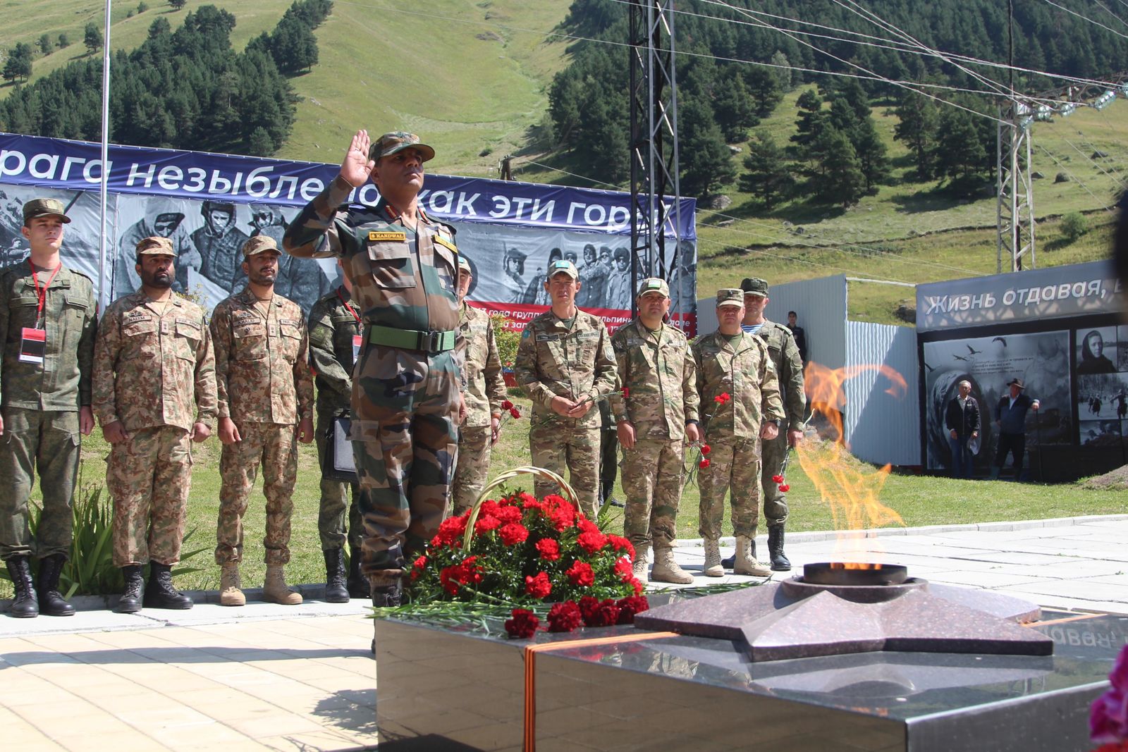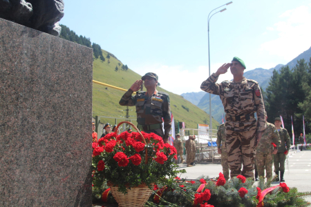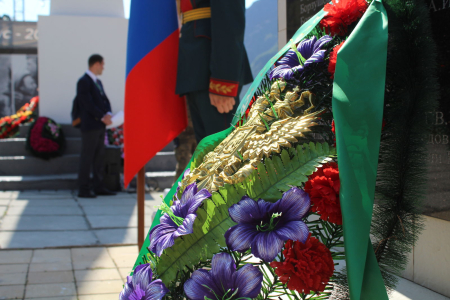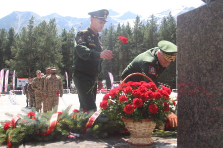 Кроме того, делегация почтила память воинов, павших во время Великой Отечественной войны 1941-1945 гг., а также в ходе памятной акции возле памятника воина альпиниста - защитника Отечества возложила цветы и венки.