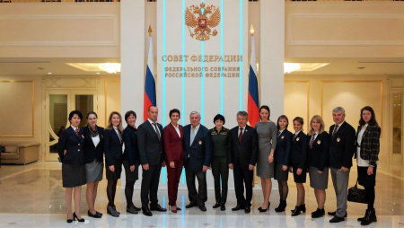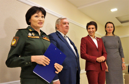 Заместитель начальника ЦСКА по военно-политической работе полковник Светлана Ишмуратова также обратилась ко всем присутствующим и выразила признательность руководству Совета Федерации Федерального Собрания РФ: