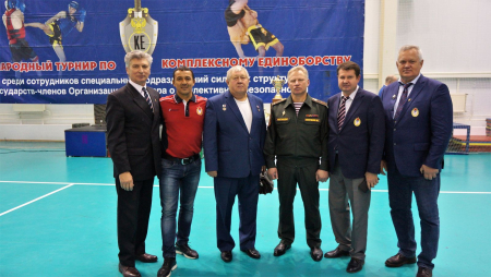 Олимпийский чемпион, серебряный призёр Олимпийских игр, победитель и призёр чемпионатов мира, заслуженный мастер спорта СССР по спортивной гимнастике Владимир Маркелов, олимпийская чемпионка по спортивной гимнастике Ольга Карасева, инструктор военно-прикладных видов спорта в ЦСКА, исполнительный директор «Федерации метания ножа» Владимир Гуреев, председатель регионального отделения г.Одинцово Виктор Цикунов и другие ветераны спорта ЦСКА посетили XVII международный турнир на Кубок ОДКБ по комплексному единоборству, который проходит в эти дни в парк-отеле «Горизонт» Одинцовского района, чтобы поддержать сборную Вооружённых Сил Российской Федерации.