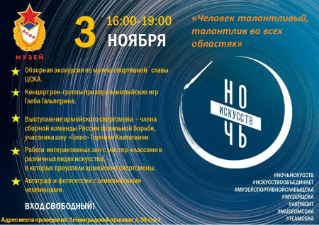 Тема мероприятия «Ночь искусств» - 2019 в ЦСКА: «Талантливый человек, талантлив во всех областях»...