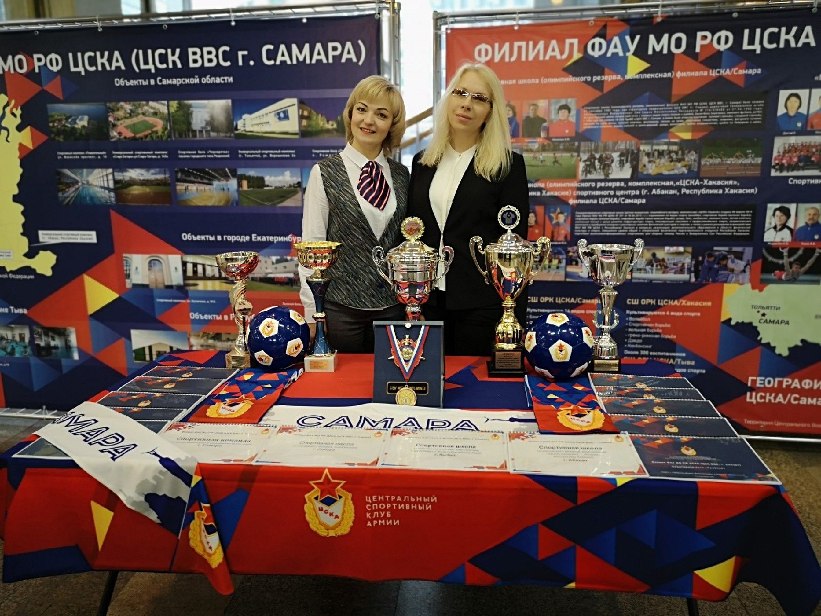 Гордостью выставки-презентации ЦСКА/Самара, конечно являются награды армейских спортсменов и памятные знаки, полученные филиалом за проведение значимых спортивных соревнований. Один из них особенно дорог филиалу. Это памятный знак от руководства Международного совета военного спорта (CISM) за достойное проведение 50-го чемпионата мира по плаванию среди военнослужащих. Мировой турнир проходил в Самаре с 16 по 23 августа 2018 года в спорткомплексе «Плавательный» и увенчался блестящей победой сборной ВС РФ. CISM присвоил оценку чемпионату мира в Самаре – «excellent».