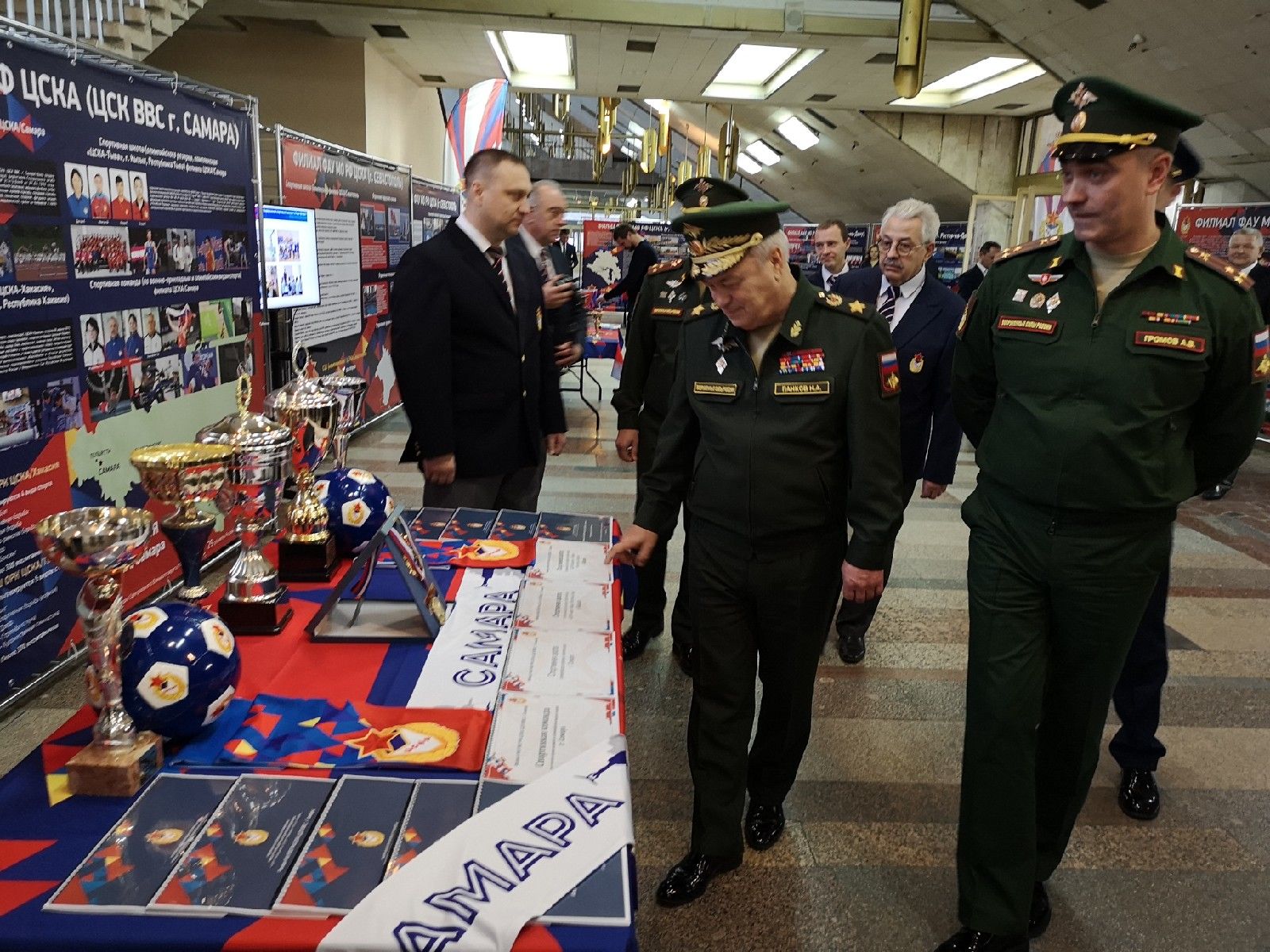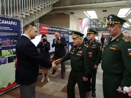 Экспозицию Самарского филиала ЦСКА на Форуме посетил Статс-секретарь - заместитель министра обороны Российской Федерации, председатель наблюдательного совета ЦСКА генерал армии Николай Панков и начальник ЦСКА полковник Артем Громов. Они пообщались с руководителем филиала Романом Махониным, ознакомились с материалами стенда.