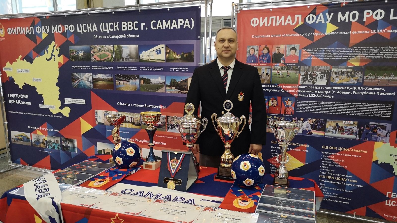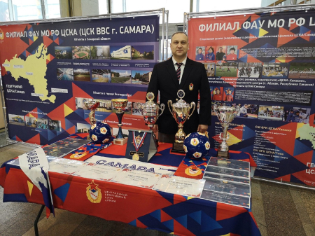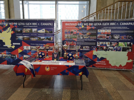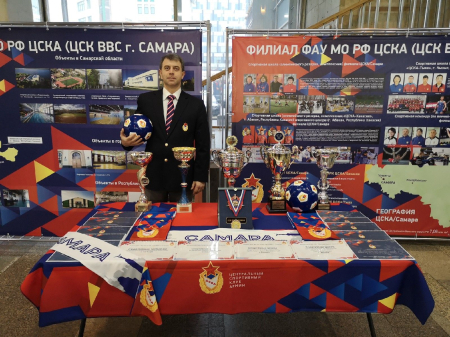 Познавательную экспозицию для посетителей Форума подготовил Самарский филиала ЦСКА. Видеопрезентация, стенд, буклеты, награды, кубки рассказывают об истории появления подразделения Клуба в Самаре, его современной жизнедеятельности, инфраструктуре армейских объектов на территории Центрального военного округа. Модераторы экспозиции – представители филиала врио начальника ЦСКА/Самара Роман Махонин и исполняющий обязанности заместителя начальника филиала Евгений Ищенко.