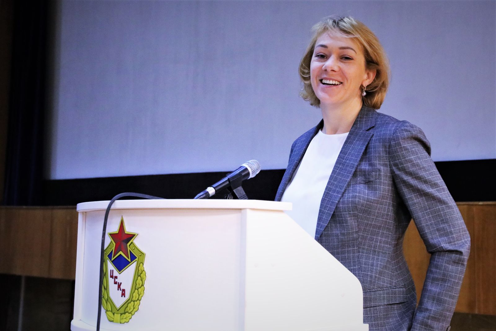 С приветственным словом к собравшимся обратилась заместитель начальника Центрального спортивного клуба Армии по военно-политической работе, двукратная олимпийская чемпионка по биатлону полковник Светлана Ишмуратова: