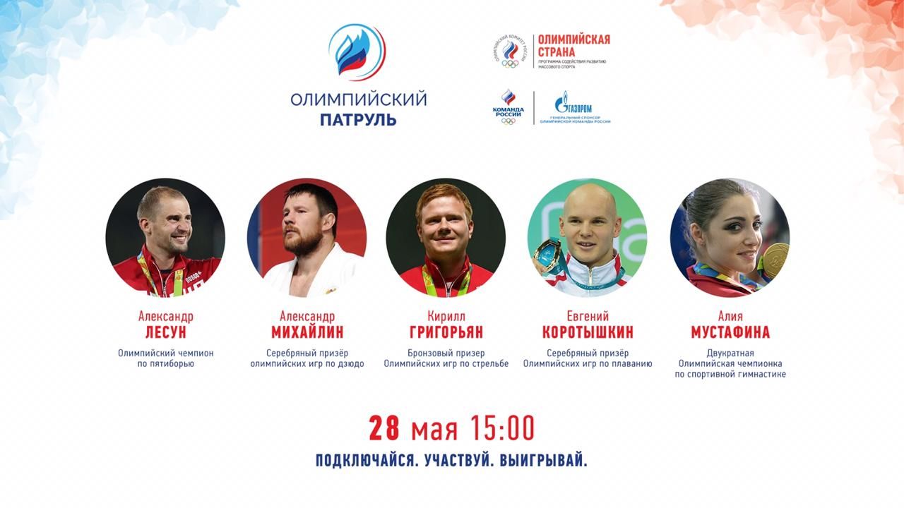 В рамках проекта зрители и участники смогли пообщаться с именитыми спортсменами. Узнать у них, как побороть волнение перед стартом и войти в состав сборной. Рассказали атлеты и о личном пути к победам, и о самых запоминающихся соревнованиях в карьере. Также для зрителей «Олимпийского патруля» под руководством профессионального инструктора Виталия Вознюка была проведена зарядка, составленная с расчетом на комфортное выполнение всех упражнений в домашних условиях.