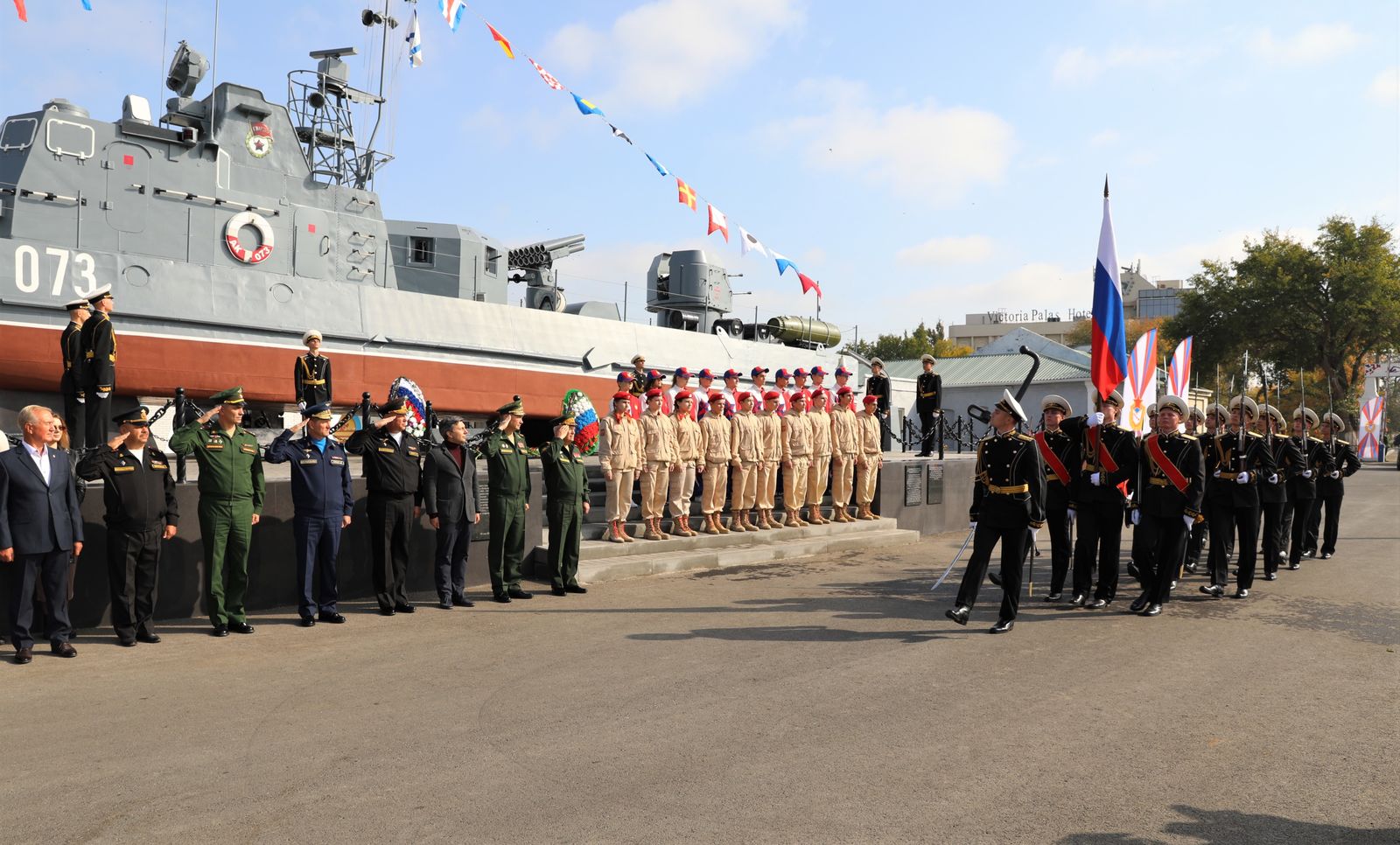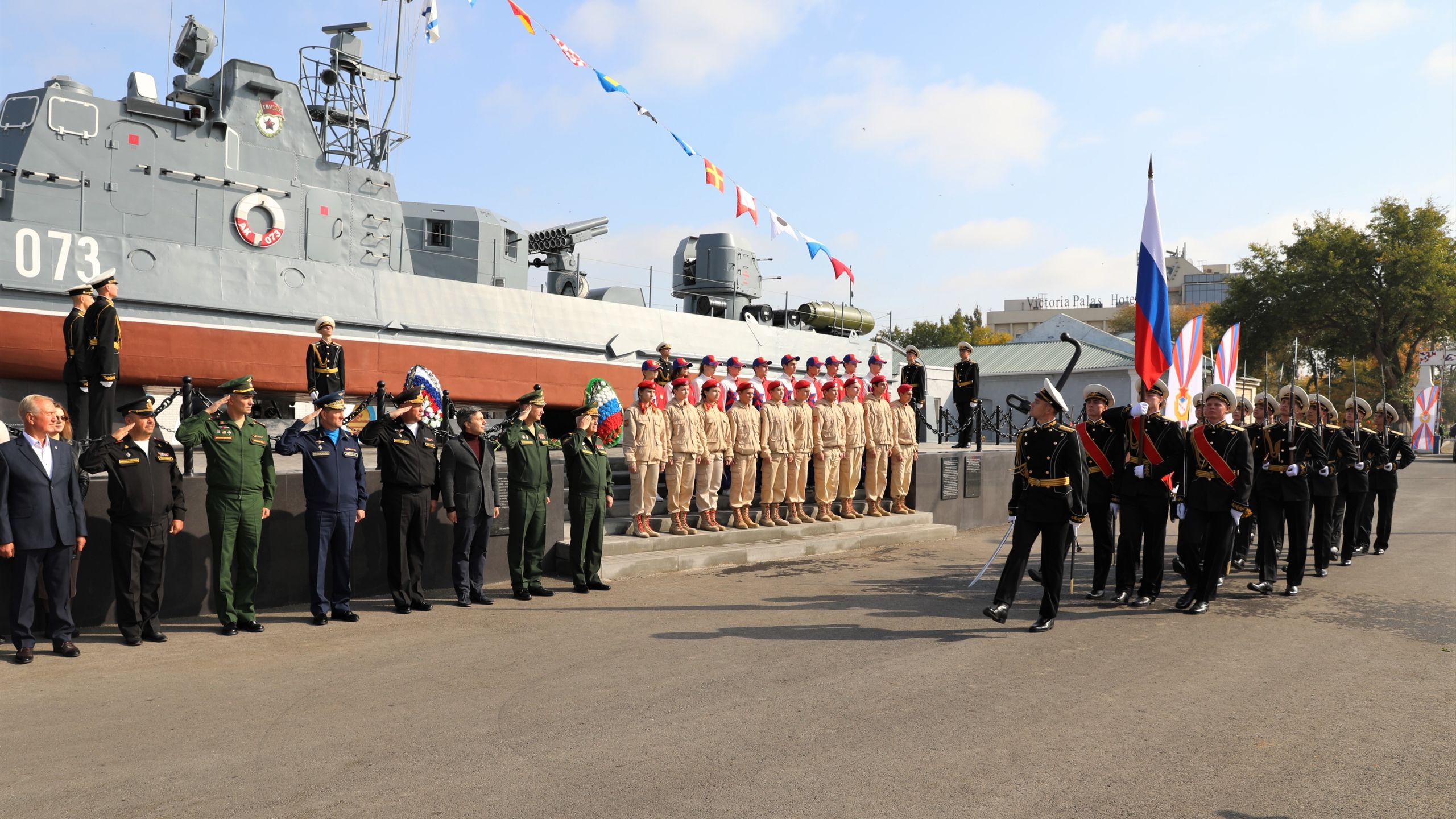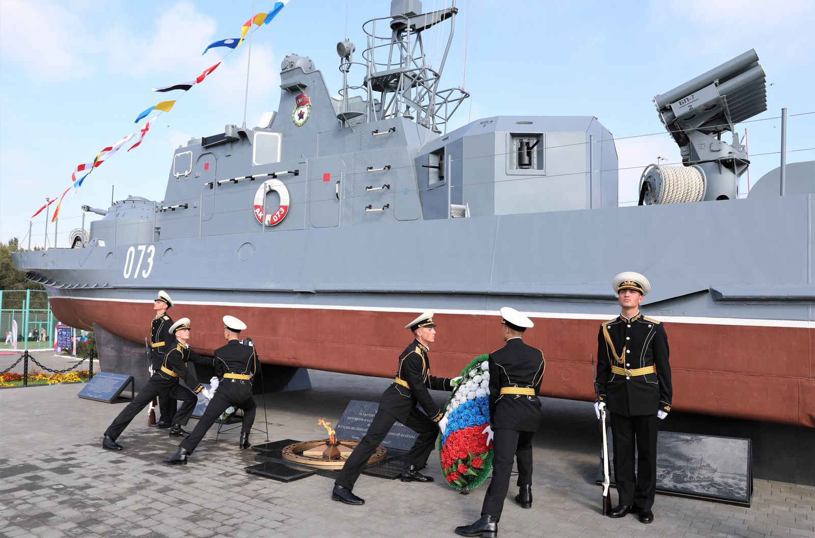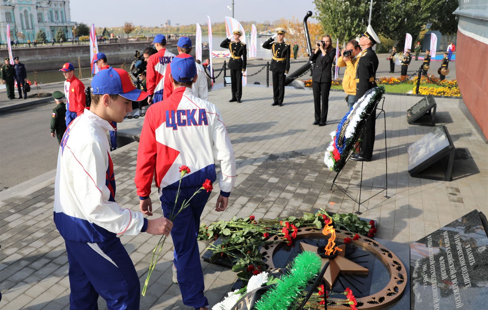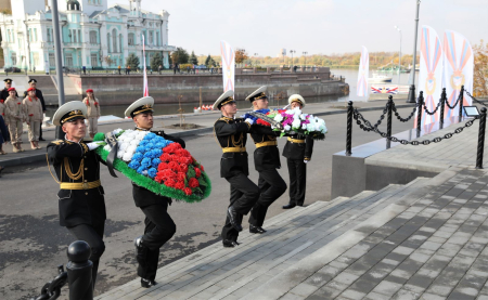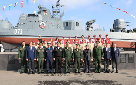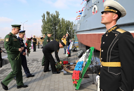 Мероприятие стартовало памятной акцией - возложением цветов и венков к памятнику Бронекатера АК-073, посвящённому подвигу военных моряков Каспийской и Волжской флотилии, участвовавших в боевых сражениях в Великой Отечественной войне 1941-1945 гг. В составе официальной делегации дань уважения бравым воинам отдали статс-секретарь, заместитель Министра обороны Российской Федерации генерал армии Николай Панков, вице-губернатор - председатель правительства Астраханской области Александр Шарыкин, командующий Каспийской флотилией контр-адмирал Сергей Пинчук, начальник ЦСКА полковник Артем Громов, начальник филиала ЦСКА/Ростов-на-Дону Виктор Чепурнов, а также именитые спортсмены ЦСКА - олимпийские чемпионы по стрельбе Юрий Федькин и Михаил Неструев и призёр Олимпиад по плаванию Евгений Лагунов.