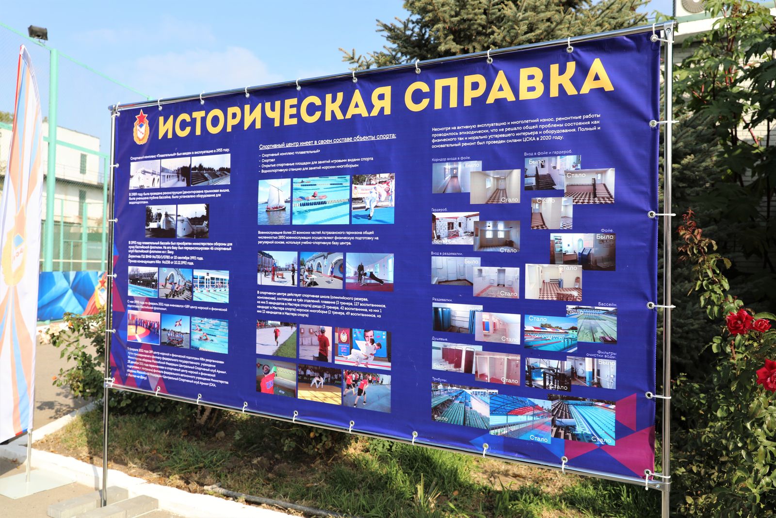 Вести качественную подготовку в спортивном центре морской и физической подготовки ЦСКА, г. Астрахань позволяют современный спортивный комплекс «Плавательный» с открытым бассейном, водно-спортивная станция, две открытые спортивные площадки, два зала единоборств, тренажерный зал, и теннисный корт.