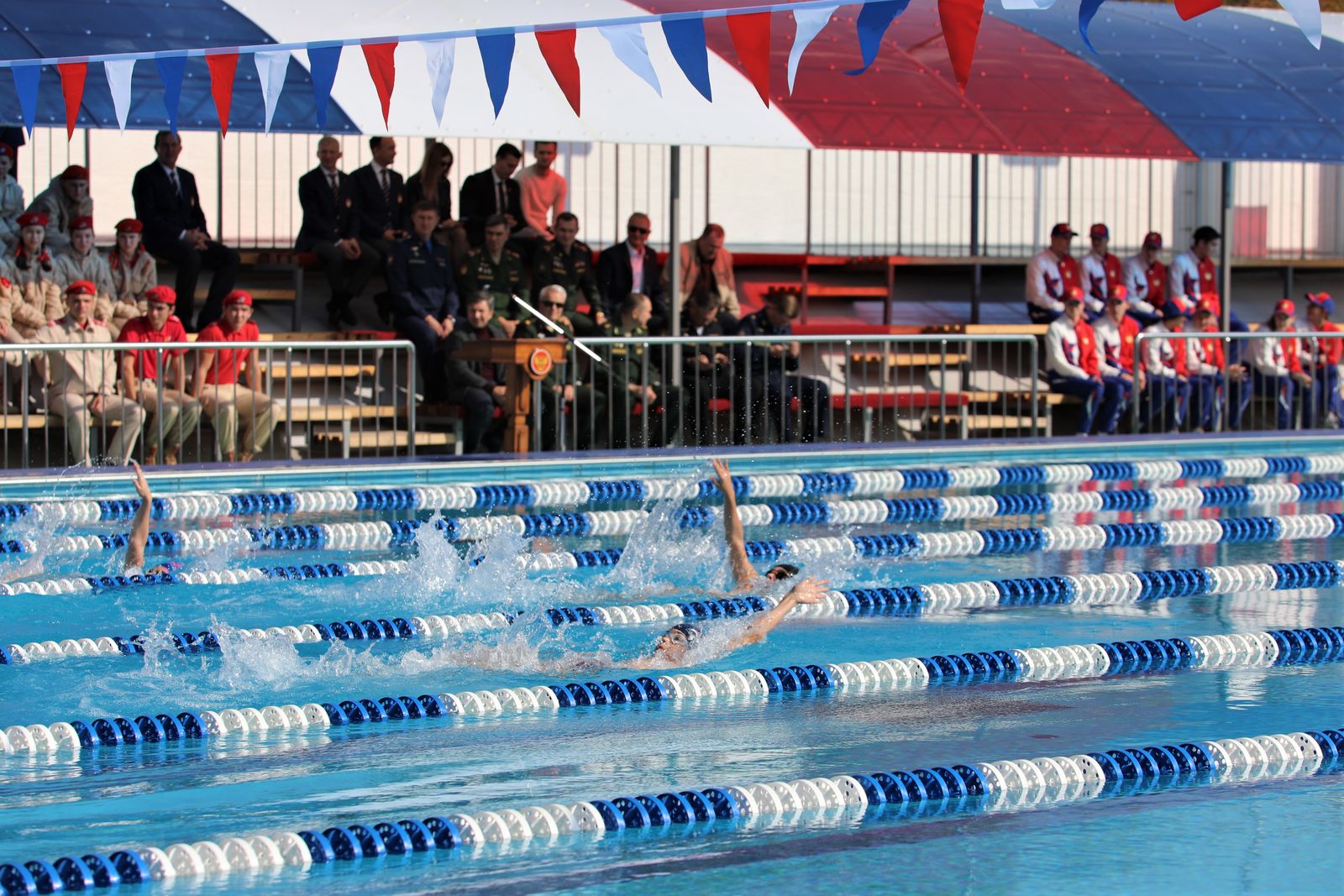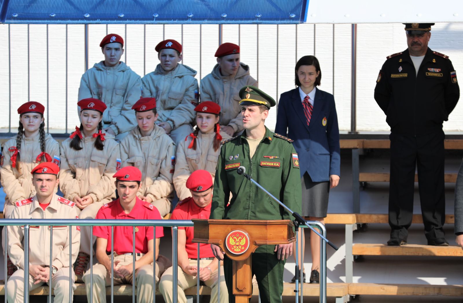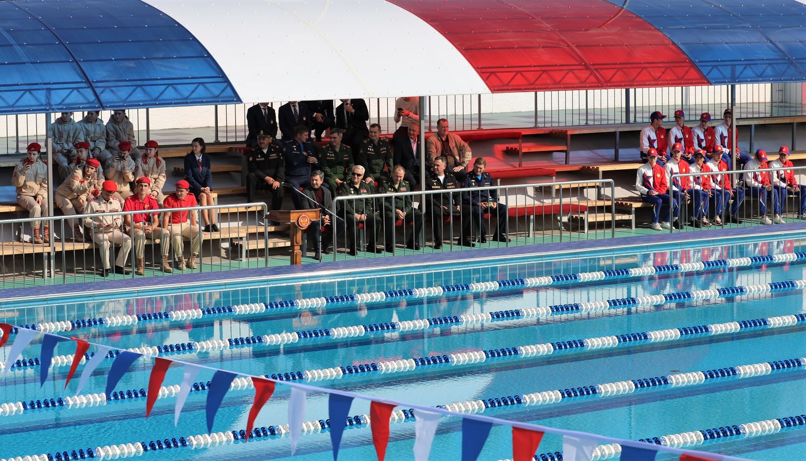 Вступительное слово также произнёс двукратный призёр Олимпийских игр по плаванию, победитель и призёр чемпионатов мира и Европы капитан Евгений Лагунов. Он поблагодарил руководство Министерства обороны и ЦСКА за создание и совершенствование спортивных комплексов в регионах, а также пожелал юным спортсменам уверенно идти к своей цели и прославлять нашу страну на международной арене, гордо неся знамя армейского спорта.