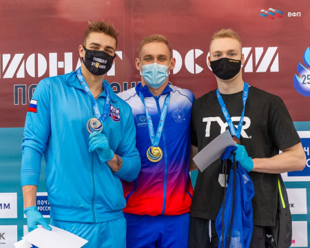 Также серебряным призером чемпионата страны в Санкт-Петербурге стал победитель Универсиад, чемпион России Александр Садовников, ставший вторым на дистанции 100 м баттерфляем. Армеец показал время 50,16 секунды, уступив Михаилу Вековищеву (49,77 секунды), но обойдя Андрея Минакова (50,22 секунды).
