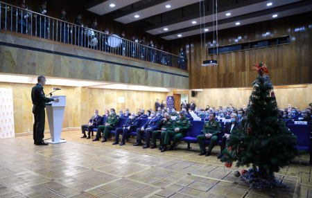 Затем начальник Центрального спортивного клуба Армии полковник Артем Громов выступил с докладом о проделанной за год работе и поздравил всех с наступающим Новым годом и Рождеством.