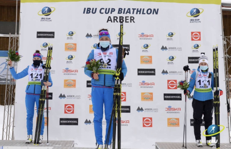 Победительница Универсиады, двукратная чемпионка мира среди юниоров Валерия Васнецова, допустив два промаха и отстав от одноклубницы на 9,8 секунды, финишировала второй. Замкнула тройку лидеров бронзовый призер XIII зимнего Европейского юношеского Олимпийского фестиваля, серебряный призер чемпионата мира U19 Анастасия Шевченко, допустившая один промах и отставшая от первенствовавшей Акимовой на 23 секунды.