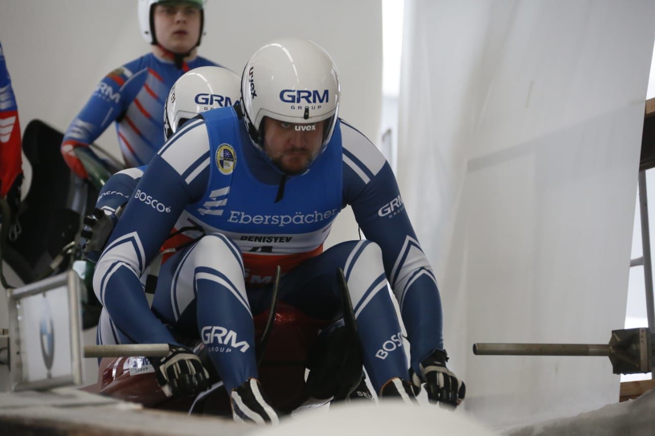 В соревнованиях на двухместных санях победили серебряный призер Олимпийских игр, победитель и призер чемпионатов мира и Европы Александр Денисьев и серебряный призер Олимпийских игр, победитель и призер чемпионатов мира и Европы Владислав Антонов, показавшие в сумме двух попыток время 1 минута 40,190 секунды. «Серебро» на счету двухместного экипажа Андрей Богданов/Юрий Прохоров (+0,238 секунды). Бронзовыми призерами стали Станистав Мальцев и Дмитрий Халилов (+0,447 секунды).