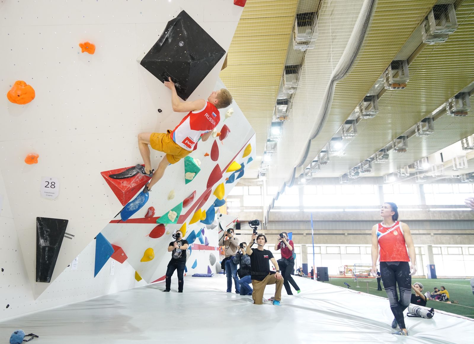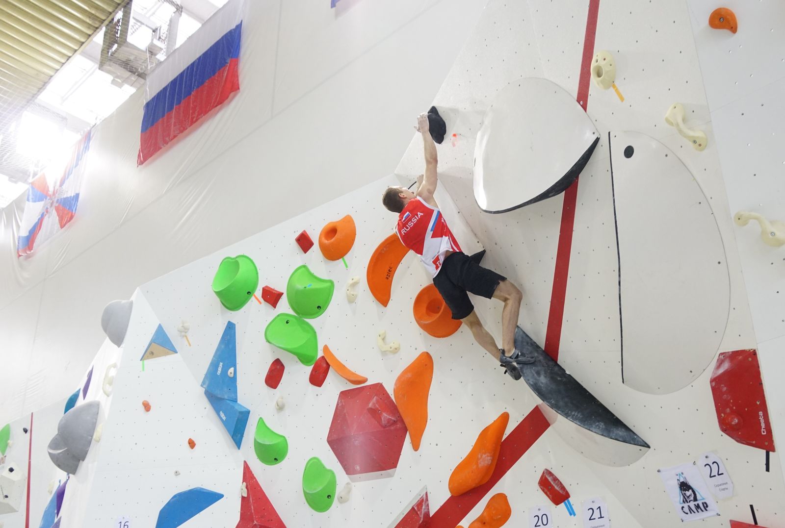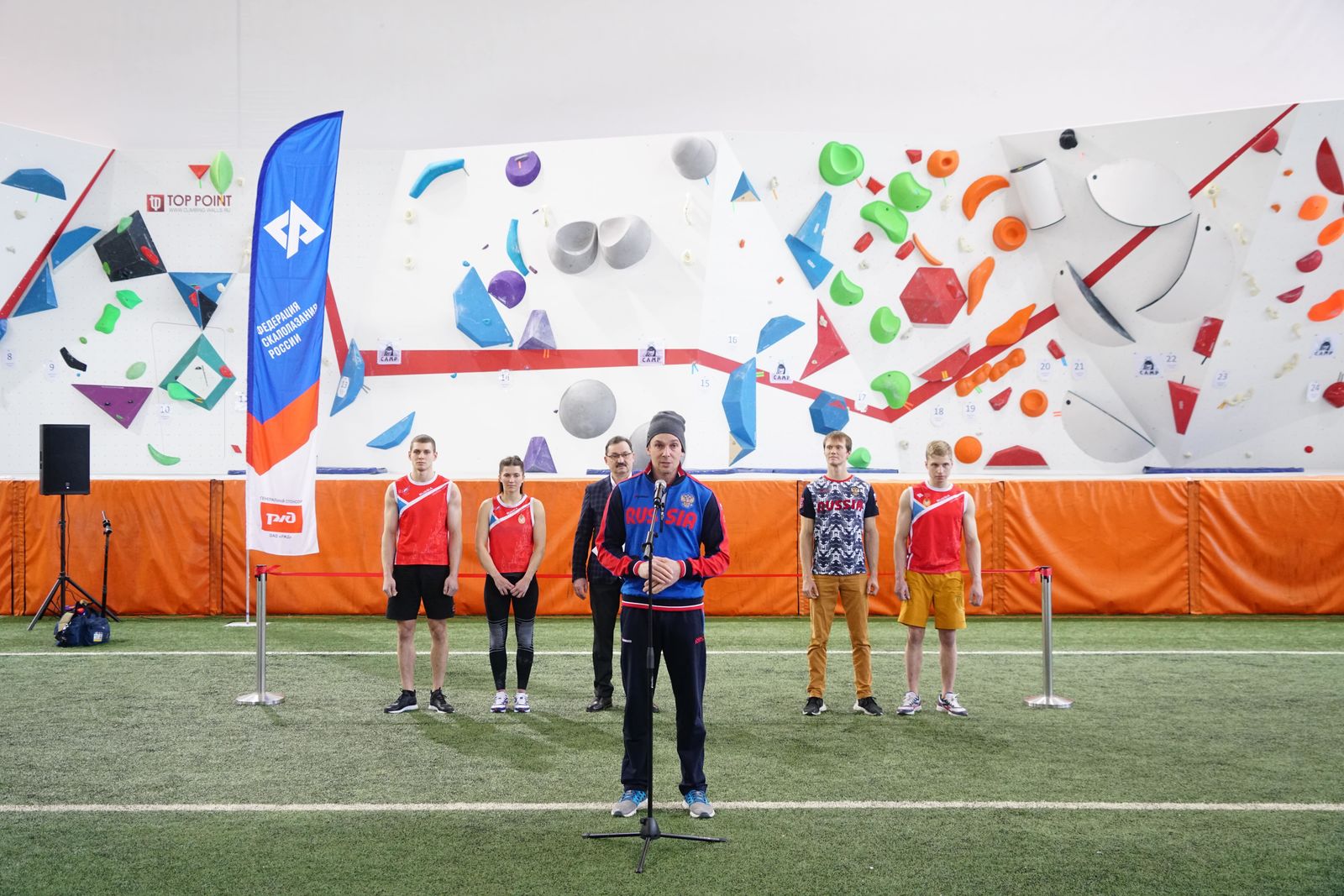 «С включением скалолазания в программу Олимпийских игр, уровень развития спорта, как у нас в стране, так и во всем мире возрос. Как и конкуренция. Поэтому наша задача совместно с Олимпийским комитетом России, с Министерством спорта РФ создать все условия для того, чтобы наши спортсмены смогли подготовиться к Играм в наиболее комфортных условиях. И один из таких этапов – открытие скалодрома, копия скалодрома, на котором будут проводится Олимпийские игры в одной из дисциплин, - сказал в своей речи Бычков. - Дисциплина «боулдеринг» является сложной технически, где очень большое значение имеет возможность спортсменов попробовать, ощутить именно в условиях соревнований, те зацепки и рельефы, на которых они будут выступать. Благодаря тому, что в прошлом году удалось съездить на олимпийскую площадку, посмотреть ее, изучить скалодром, сейчас ее удалось воссоздать здесь в условиях в ЦСКА, за что огромное спасибо армейскому Клубу».