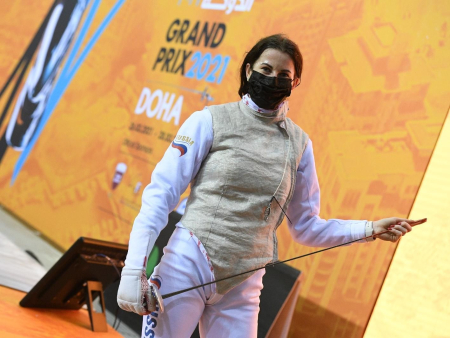 Олимпийская чемпионка, серебряный призер Олимпийских игр, многократная чемпионка мира, Всемирных военных игр, Европы и этапов Кубка мира капитан ВС РФ Инна Дериглазова завоевала «золото» на турнире в Дохе. В финале она не оставила шансов китаянке Чэнь Цинюань, выиграв у соперницы со счетом 15:5.