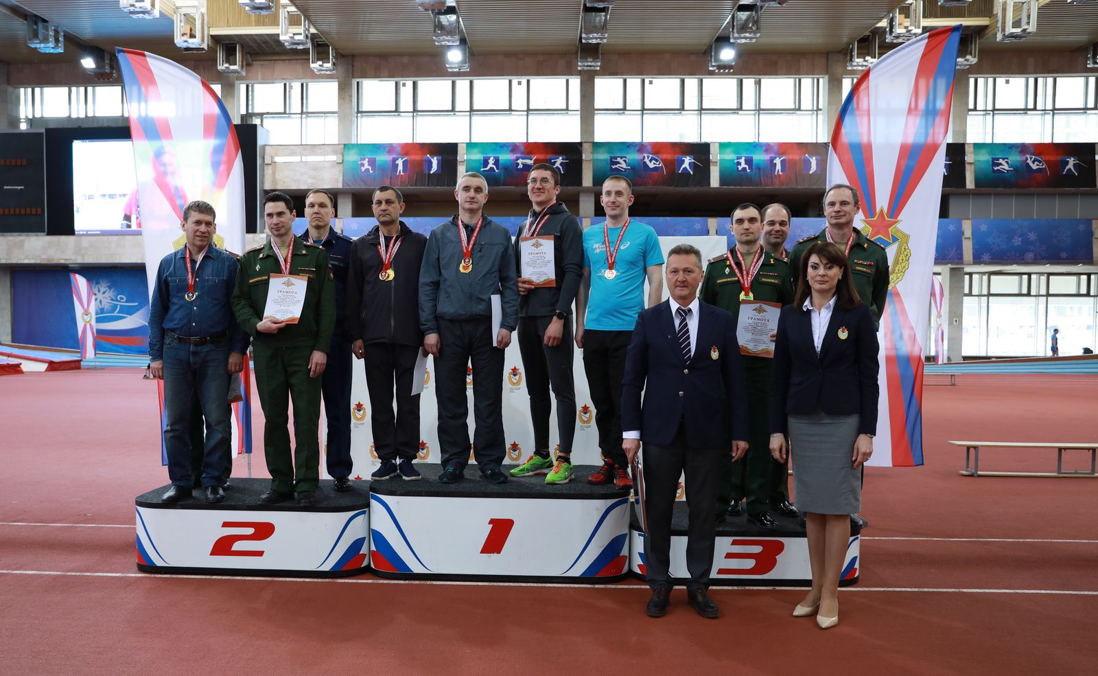 Заключительным этапом турнира стала красочная эстафета. Именно этот вид соревновательной программы наиболее шумно воспринимается болельщикам и членами команды, а сами участники делают последний рывок, выкладываясь на все 100 %. В награждении участников соревнований по легкой атлетике приняли участие серебряный призер Олимпийских игр по легкой атлетике капитан Наталья Иванова, чемпионка мира и Европы по легкой атлетике старший лейтенант Ксения Рыжова, а также руководство спортивной команды ЦСКА (по легкой атлетике) подполковник Елена Донькина, Михаил Вдовин и Андрей Крупорушников.