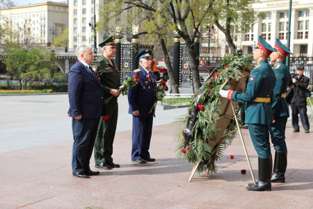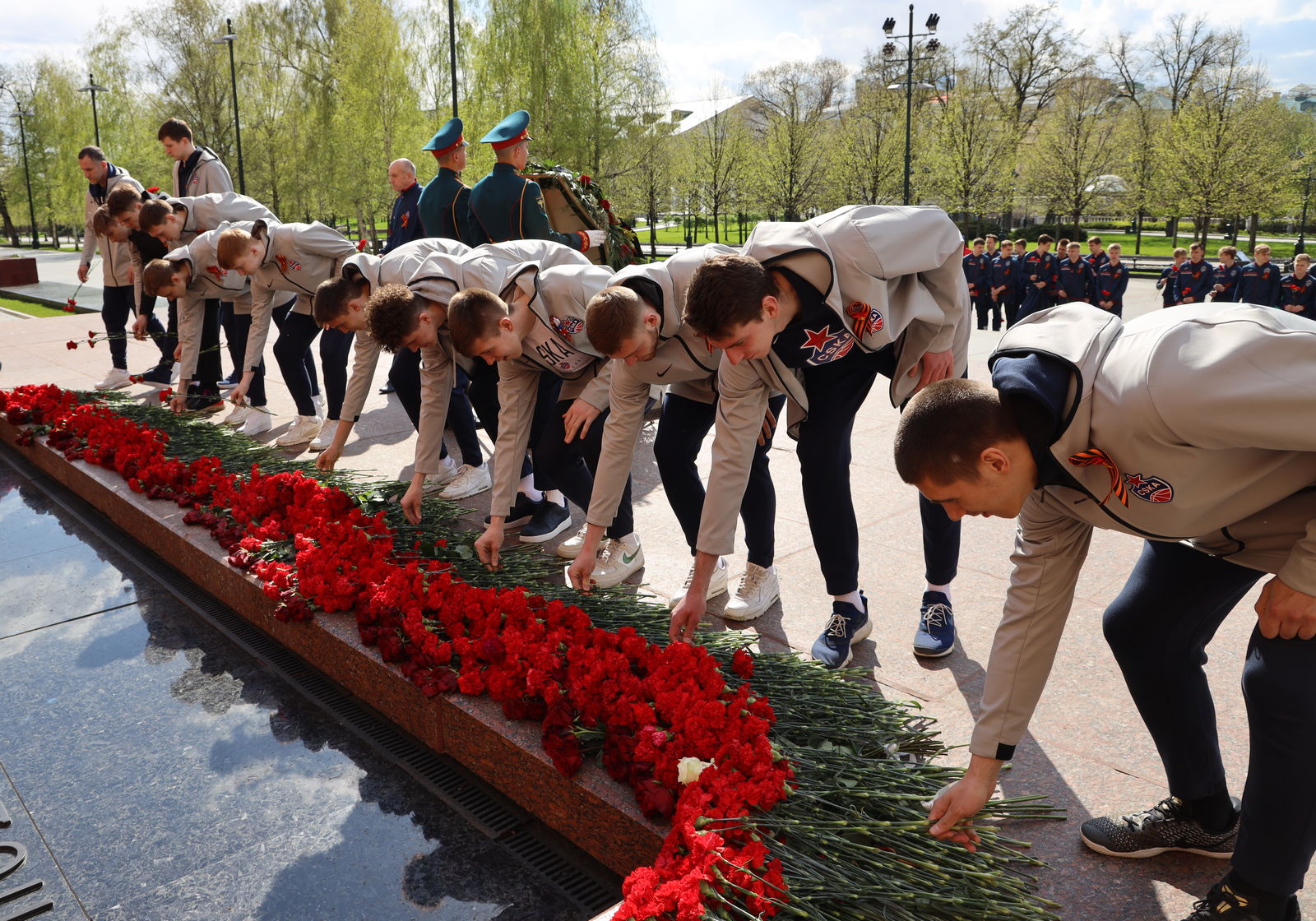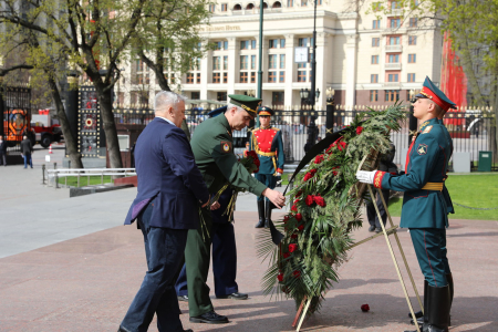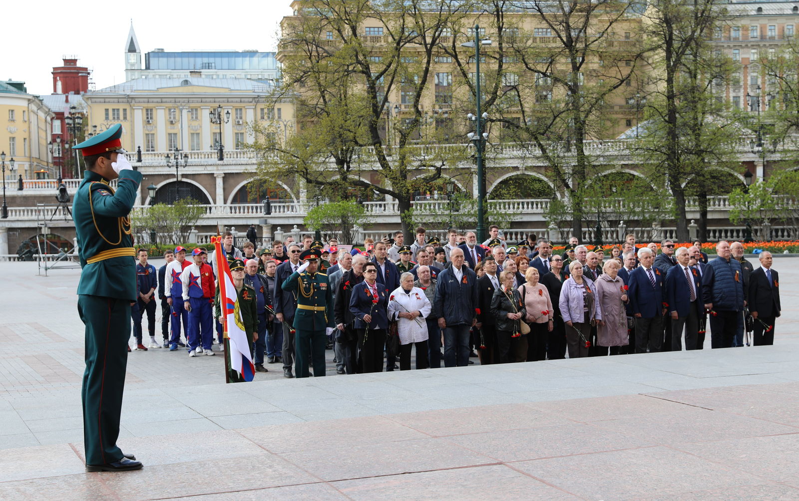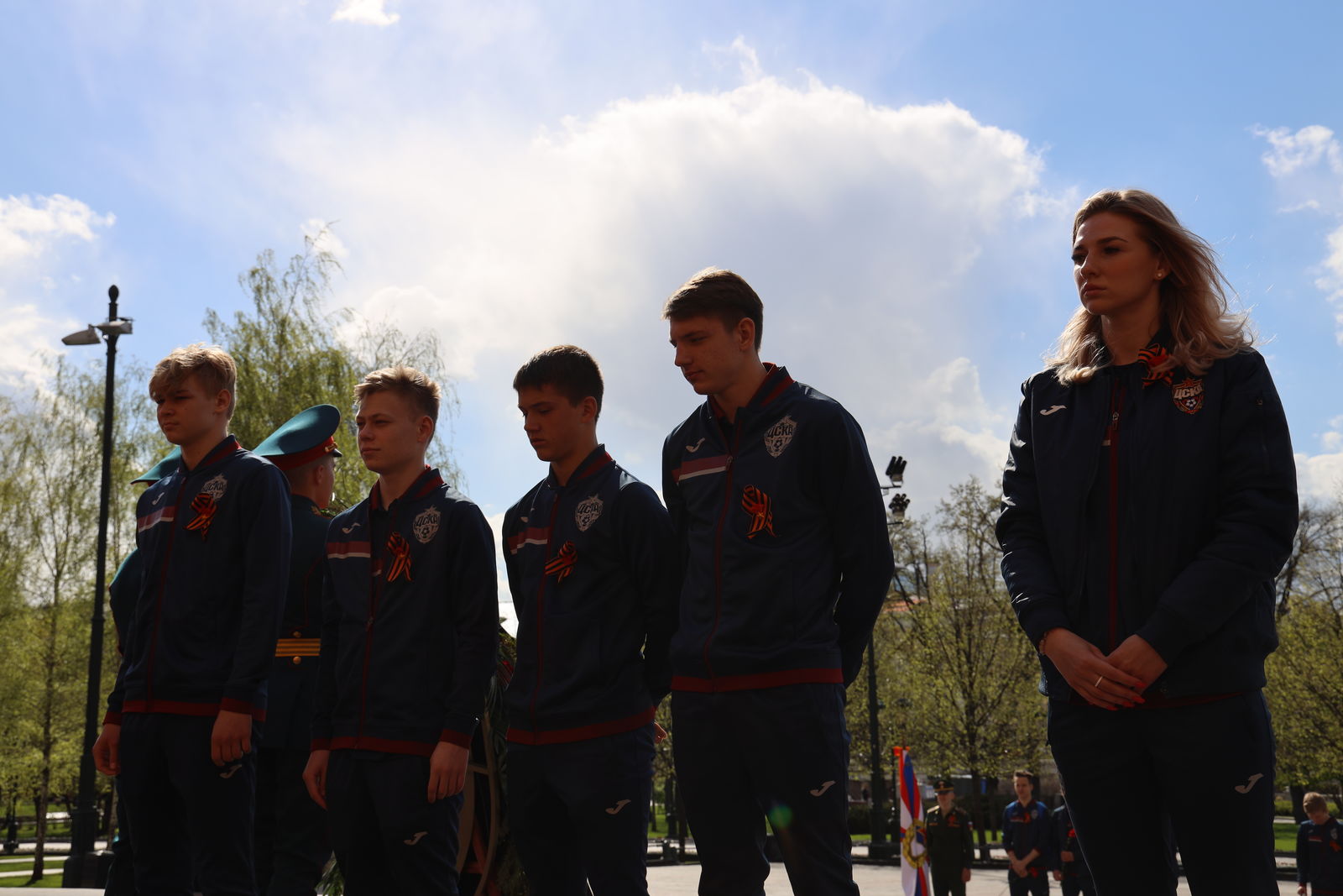 Во главе с начальником Центрального спортивного клуба Армии полковником Артемом Громовым венок к Могиле Неизвестного Солдата возложили фронтовик, почетный член Президиума Совета ветеранов спорта ЦСКА полковник Николай Васильевич Ключников, а также заместитель председателя Совета ветеранов спорта ЦСКА Николай Степанович Прокоп.