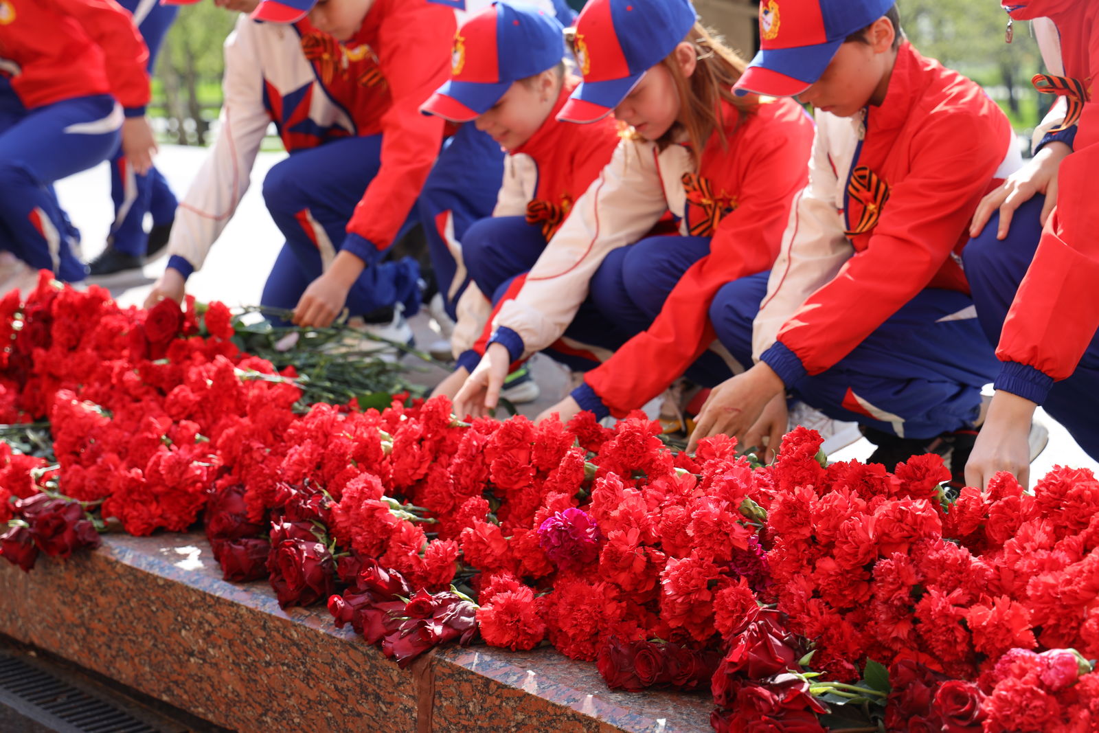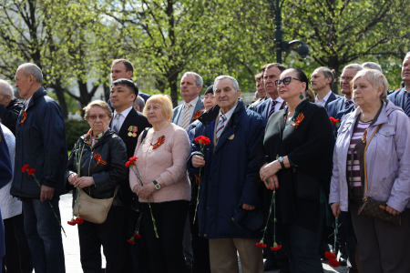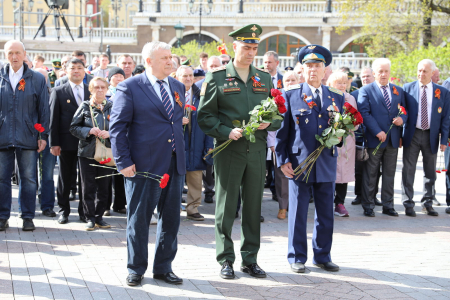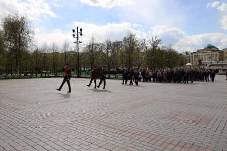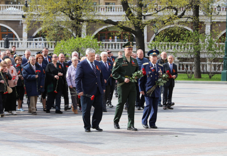 Многочисленная делегация армейцев почтила память погибших воинов минутой молчания и возложила цветы к Вечному огню.