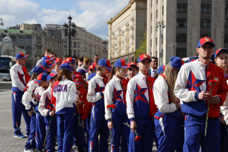 В торжественном мероприятии в Александровском саду у стен Кремля приняли участие представители ЦСКА: ветераны Великой Отечественной войны и ветераны армейского спорта, руководство и сотрудники армейского Клуба, олимпийские чемпионы разных лет, воспитанники СШОР по разным видам спорта, представители профессиональных клубов ЦСКА – ПБК, ЖФК и ПФК, а также руководство регбийного клуба ЦСКА.