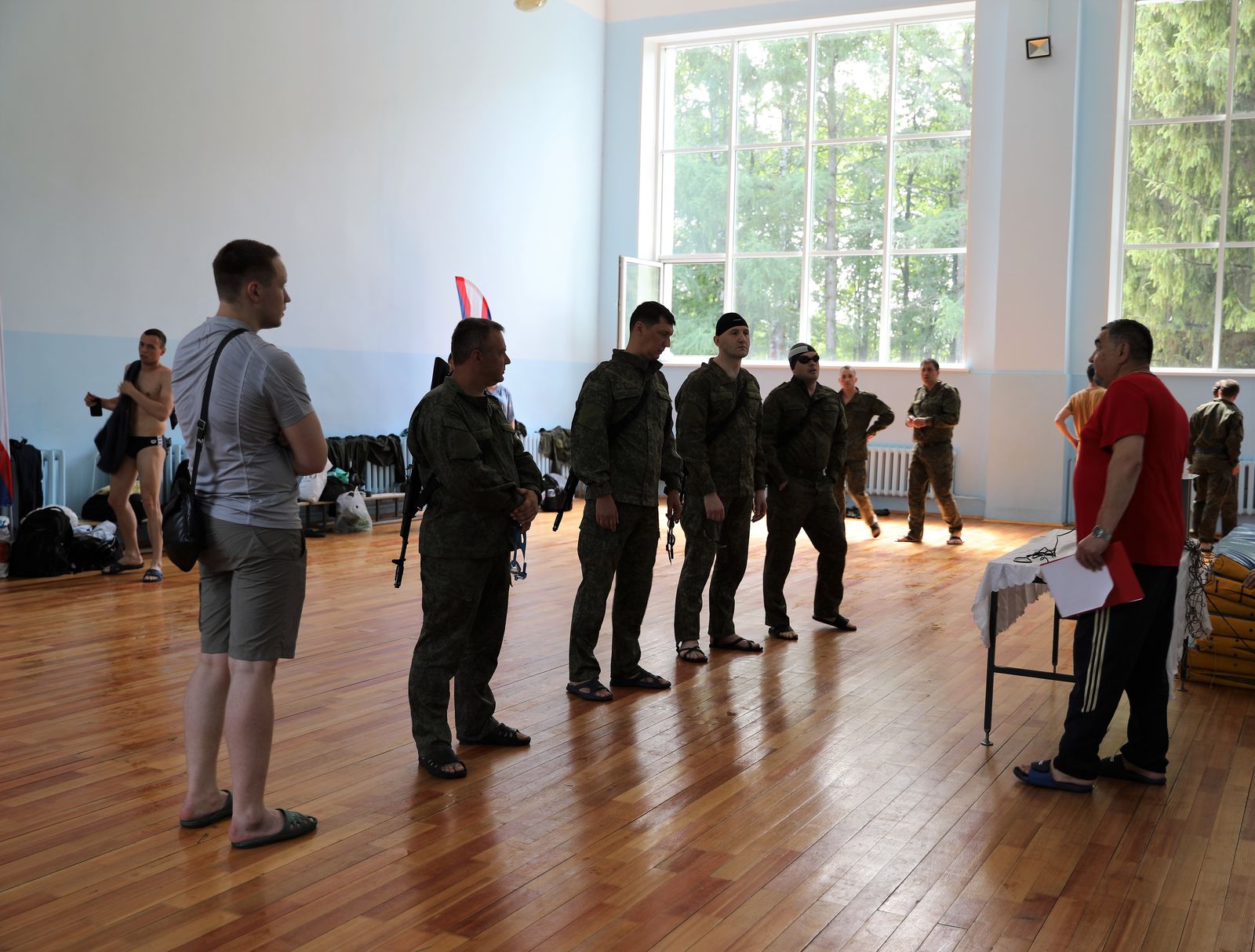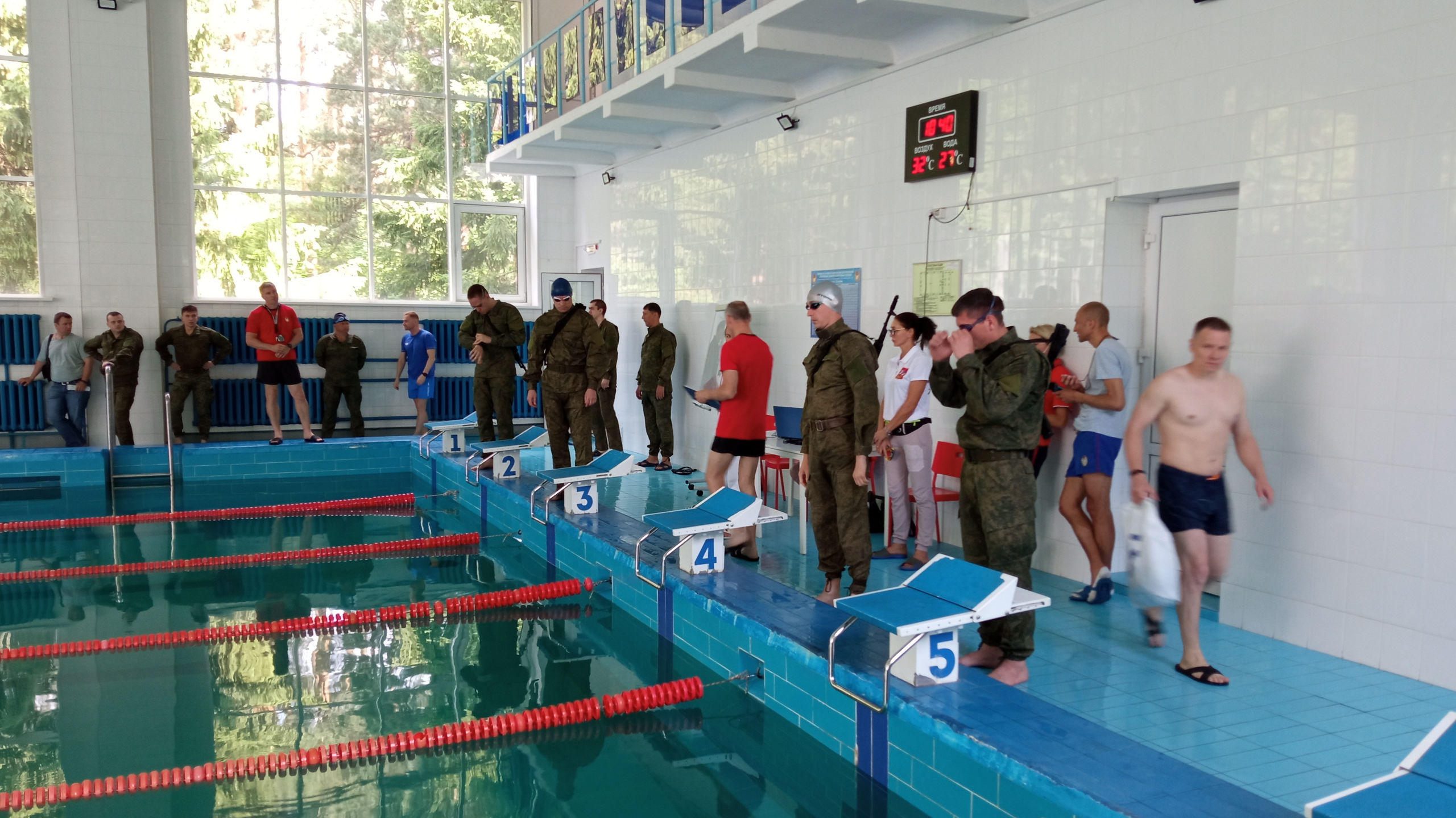 Всего в турнире по плаванию с автоматом приняли участие 41 военнослужащий, представляющий 18 команд, разделенных на три группы.