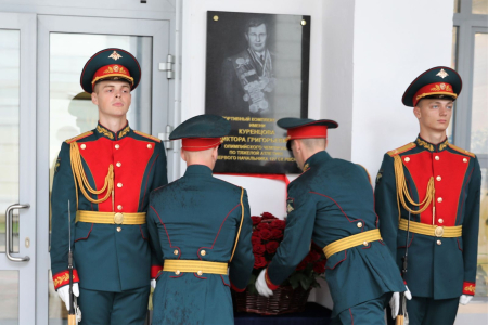 Торжественное мероприятие завершилось возложением корзины и цветов к памятной доске Куренцова и общим фотографированием.